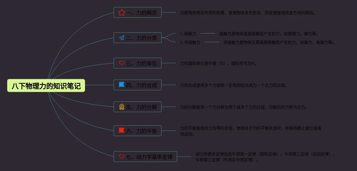 21张物理八下力思维导图合集,物理八下力思维导图,内容涵盖力的概念、力的分类、力的单位、力的合成、力的分解等7个部分,21张可打印,每张思维导图都非常清晰,每张图片均可打印。