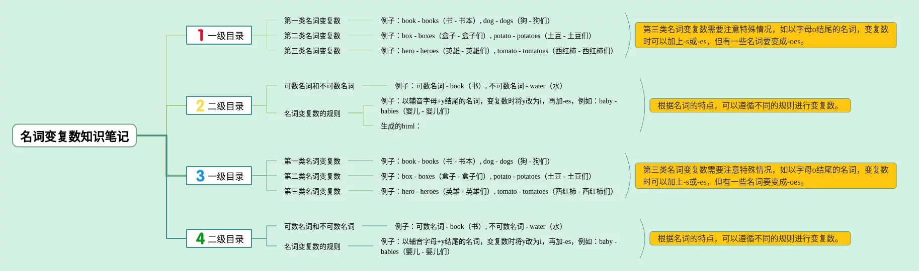 20张名词变复数思维导图汇总,名词变复数思维导图,内容涵盖一级目录、二级目录、一级目录、二级目录等4个知识点,20张附下载,每张思维导图都非常简单,每张图片均附下载。
