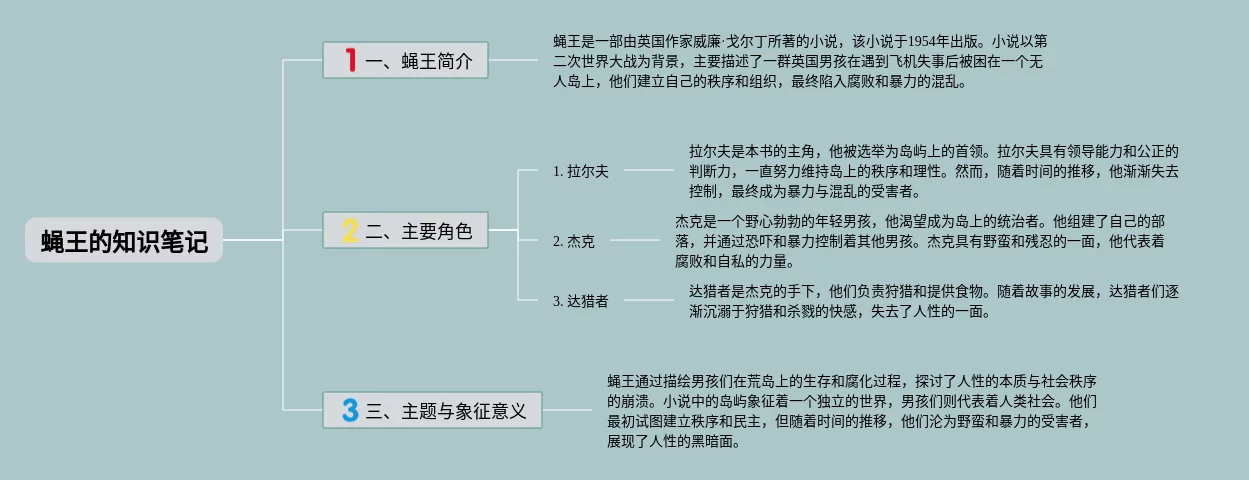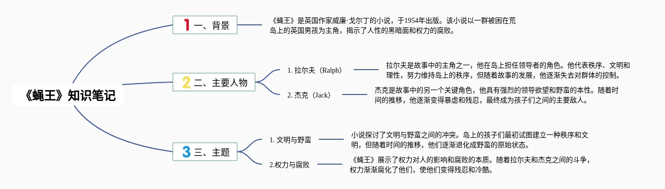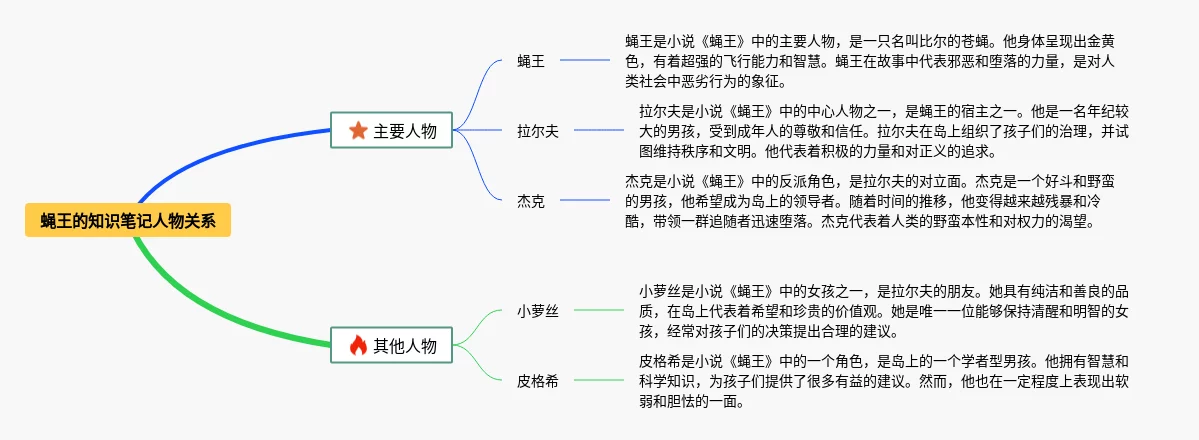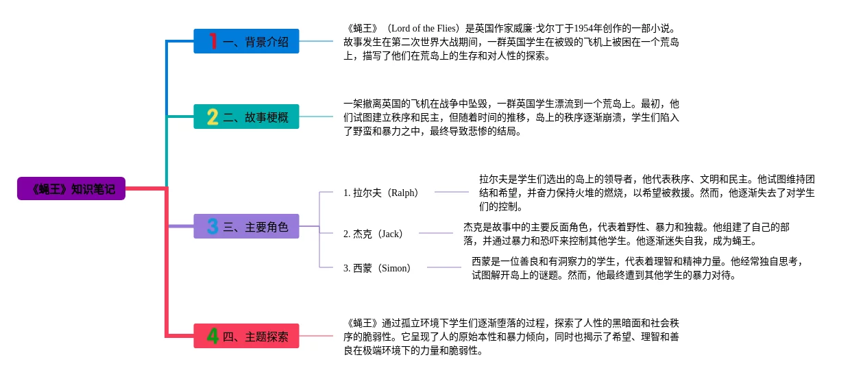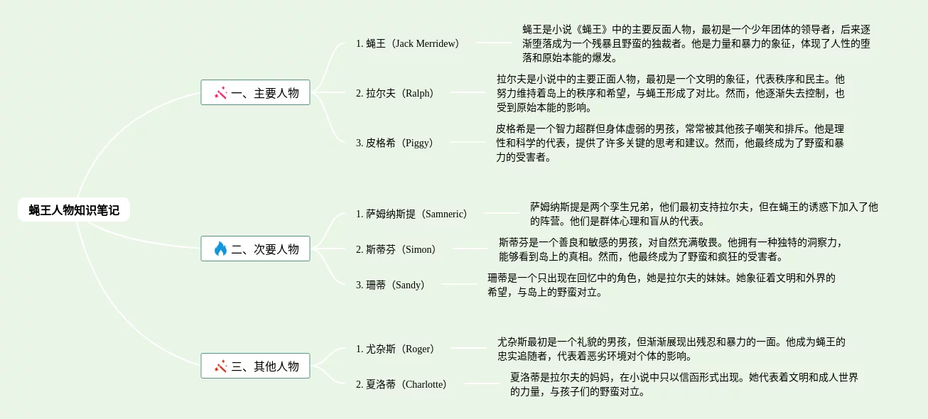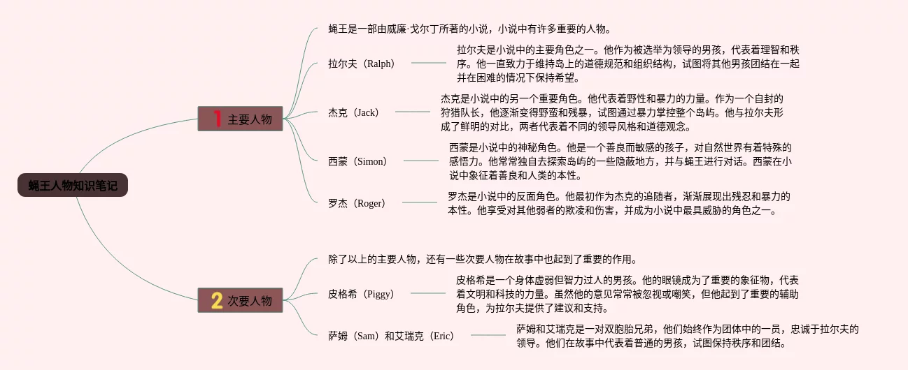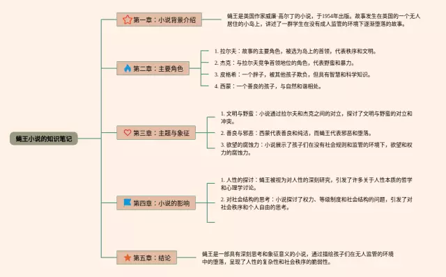 24张《蝇王》思维导图合集,《蝇王》思维导图,内容涵盖蝇王简介、主要角色、主题与象征意义等3个部分,24张值得收藏,每张思维导图都非常简单,每张图片均值得收藏。