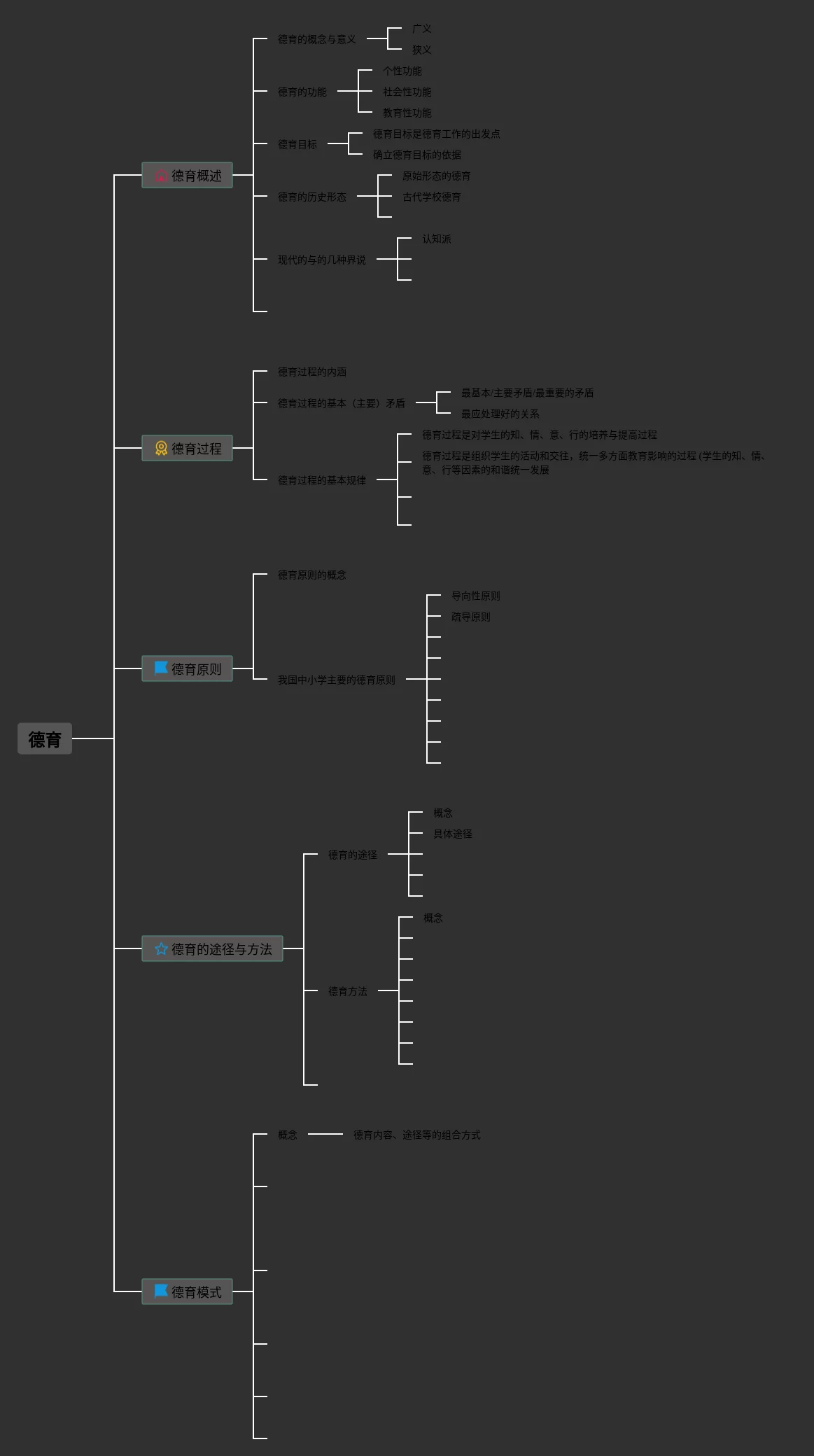 23张教招思维导图汇总,教招思维导图,内容涵盖德育概述、德育过程、德育原则、德育的途径与方法、德育模式等5个要点,23张高清晰可打印,每张思维导图都非常简单,每张图片均高清晰可打印。