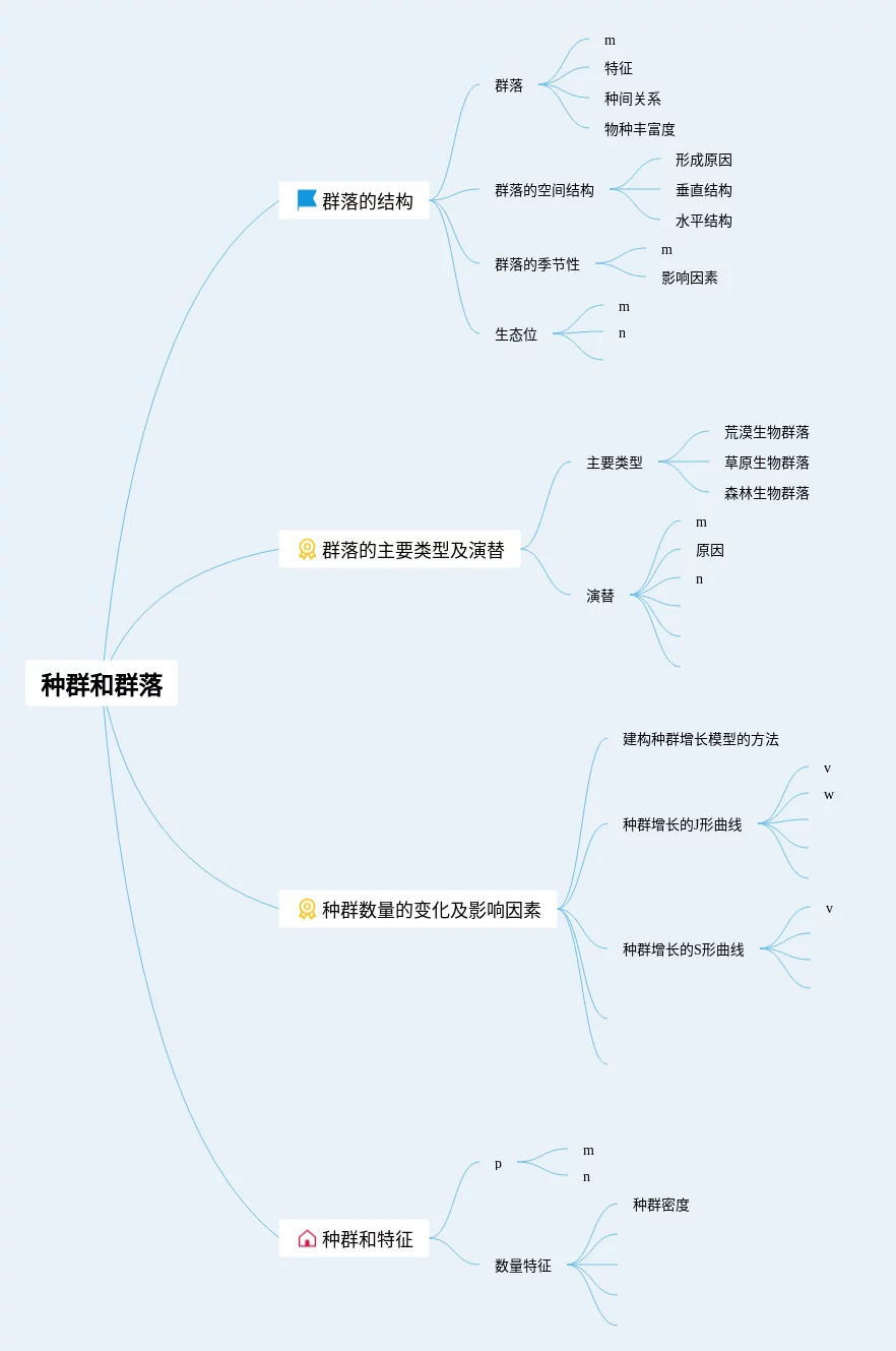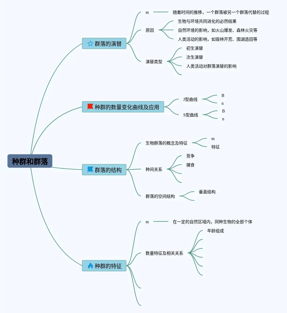 21张生物种群和群落知识点思维导图合集,生物种群和群落知识点思维导图,内容涵盖群落的演替、种群的数量变化曲线及应用、群落的结构、种群的特征等4个方面,21张精选版,每张思维导图都非常漂亮,每张图片均精选版。