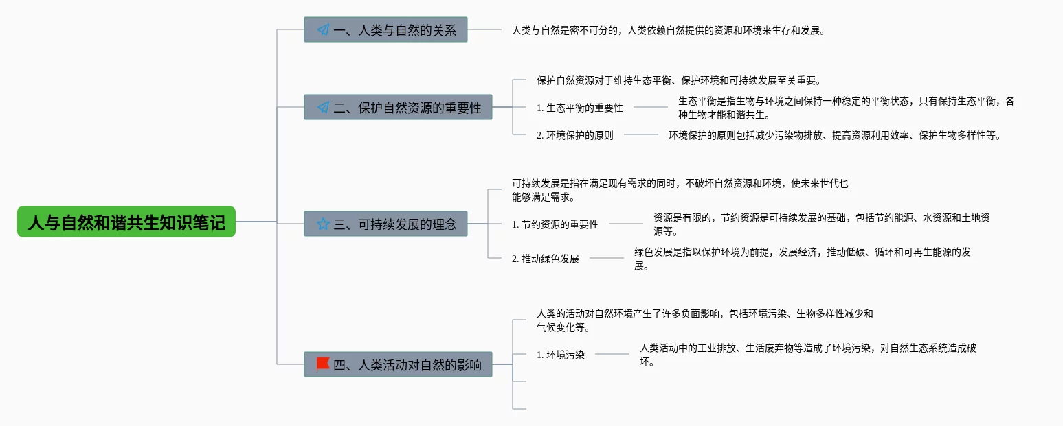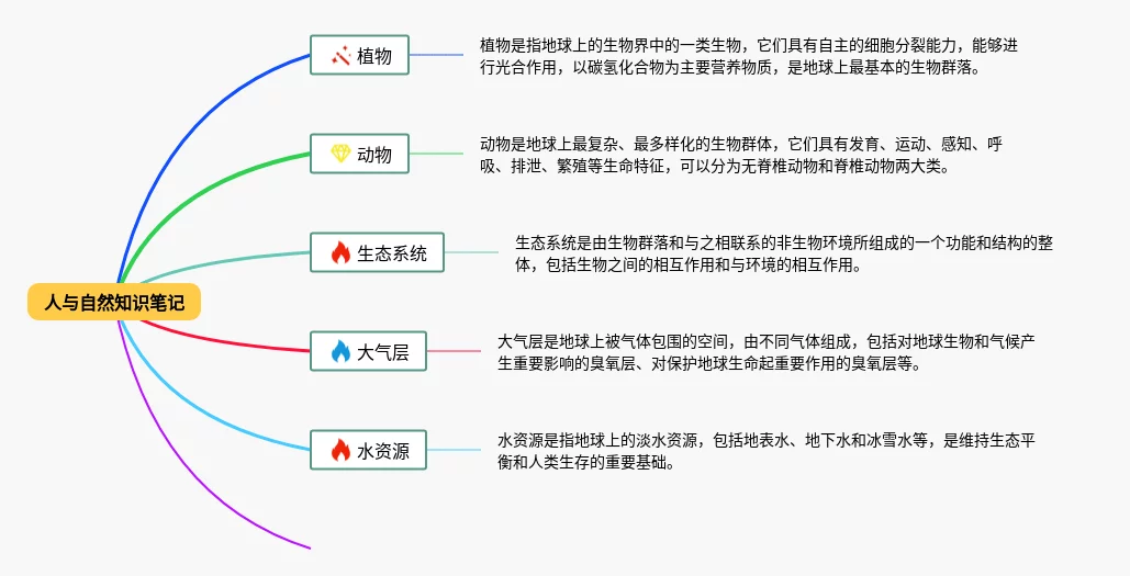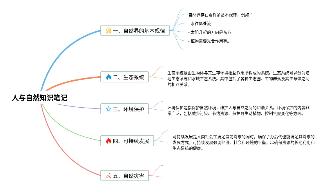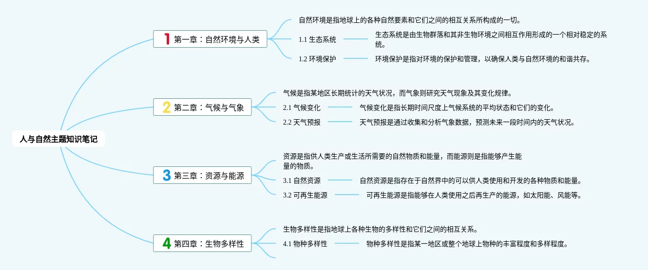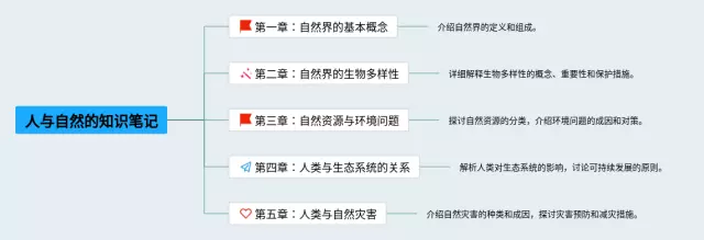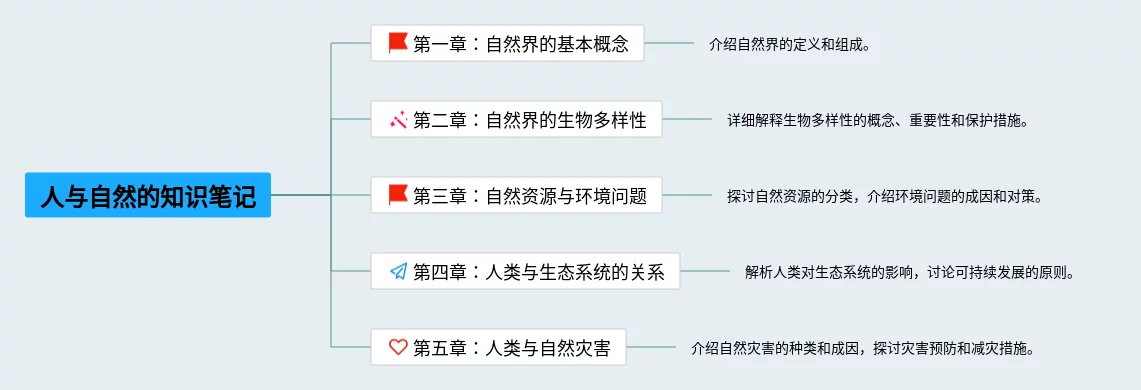 22张人与自然思维导图汇总,人与自然思维导图,内容涵盖第一章自然界的基本概念、第二章自然界的生物多样性、第三章自然资源与环境问题、第四章人类与生态系统的关系、第五章人类与自然灾害等5个要点,22张可打印,每张思维导图都非常漂亮,每张图片均可打印。