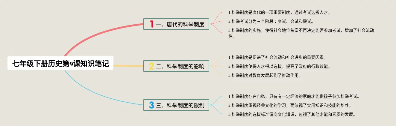 20张七年级下册历史9课思维导图合集,七年级下册历史9课思维导图,内容涵盖唐代的科举制度、科举制度的影响、科举制度的限制等3个方面,20张附打印高清版,每张思维导图都非常清晰,每张图片均附打印高清版。