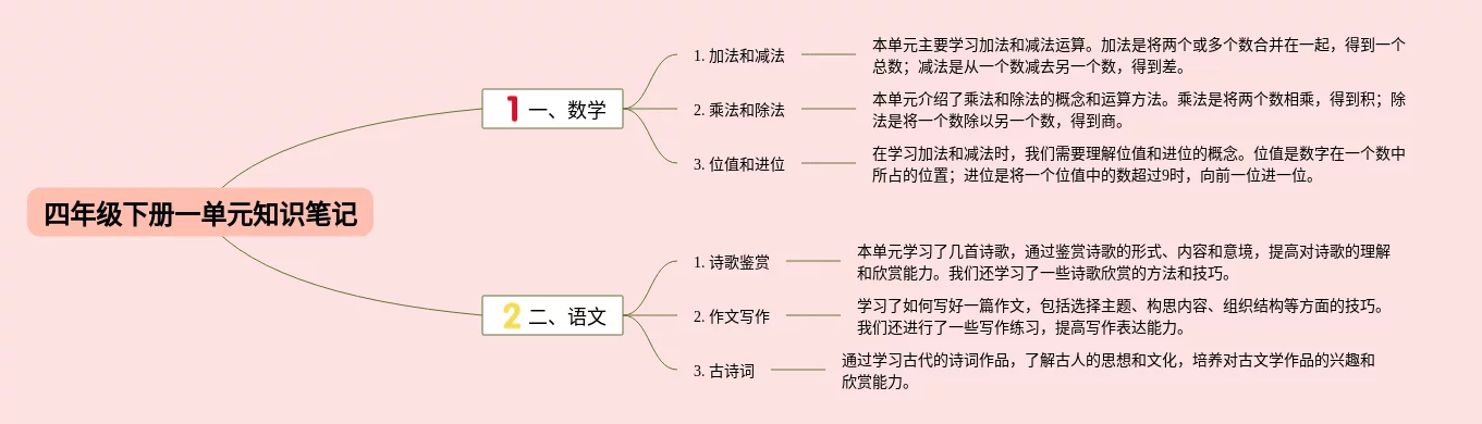 简化四年级下册一单元思维导图(24张附打印高清版)
