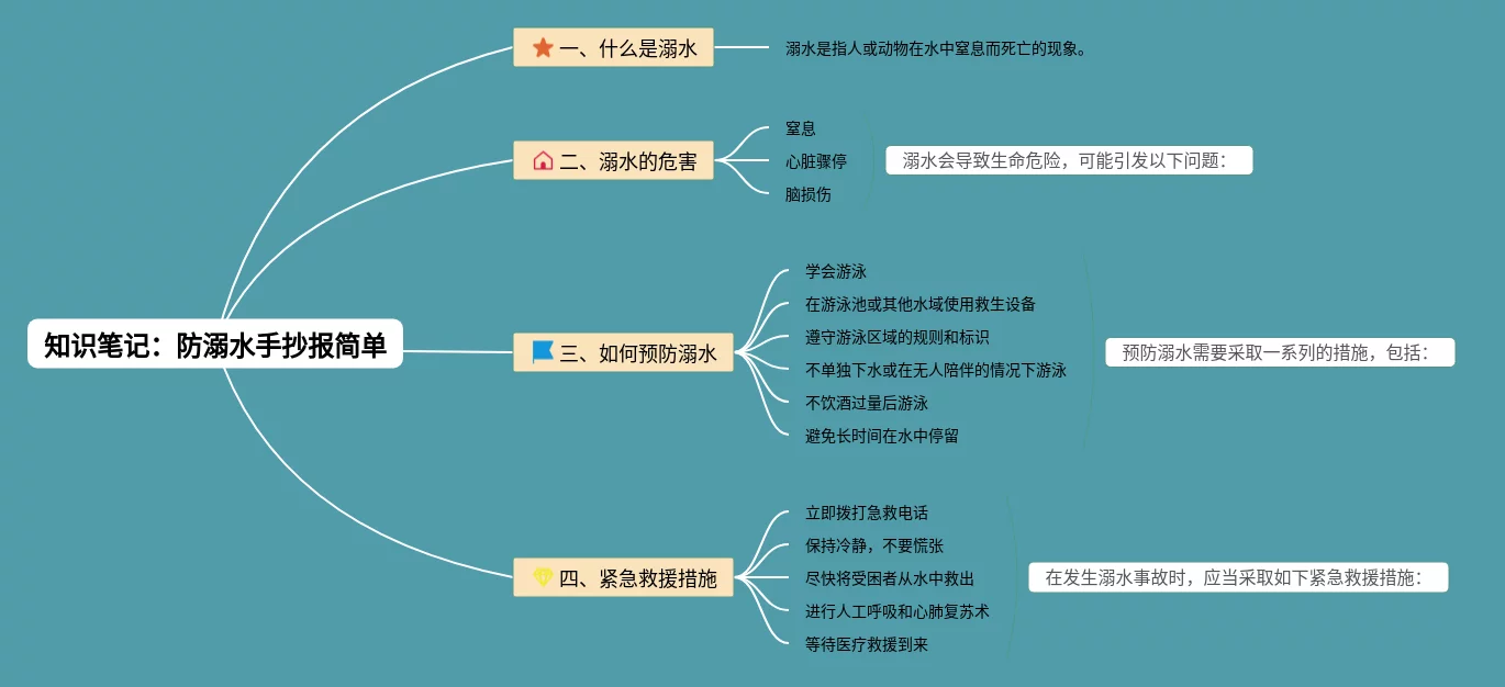24张防溺水的思维导图怎么画合集,防溺水的思维导图怎么画,内容涵盖溺水的危害、防溺水的措施等2个要点,24张精选版,每张思维导图都非常漂亮,每张图片均精选版。