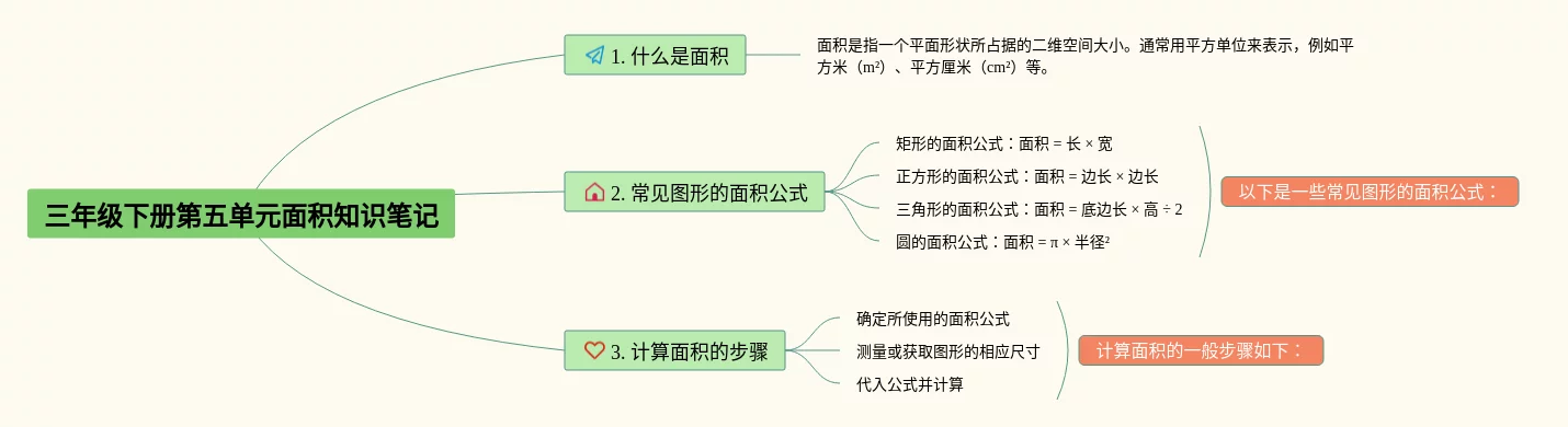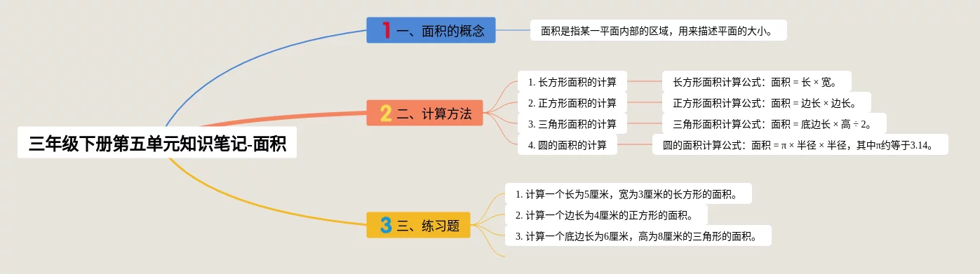 思维导图三年级下册数学第五单元面积(21张可打印)