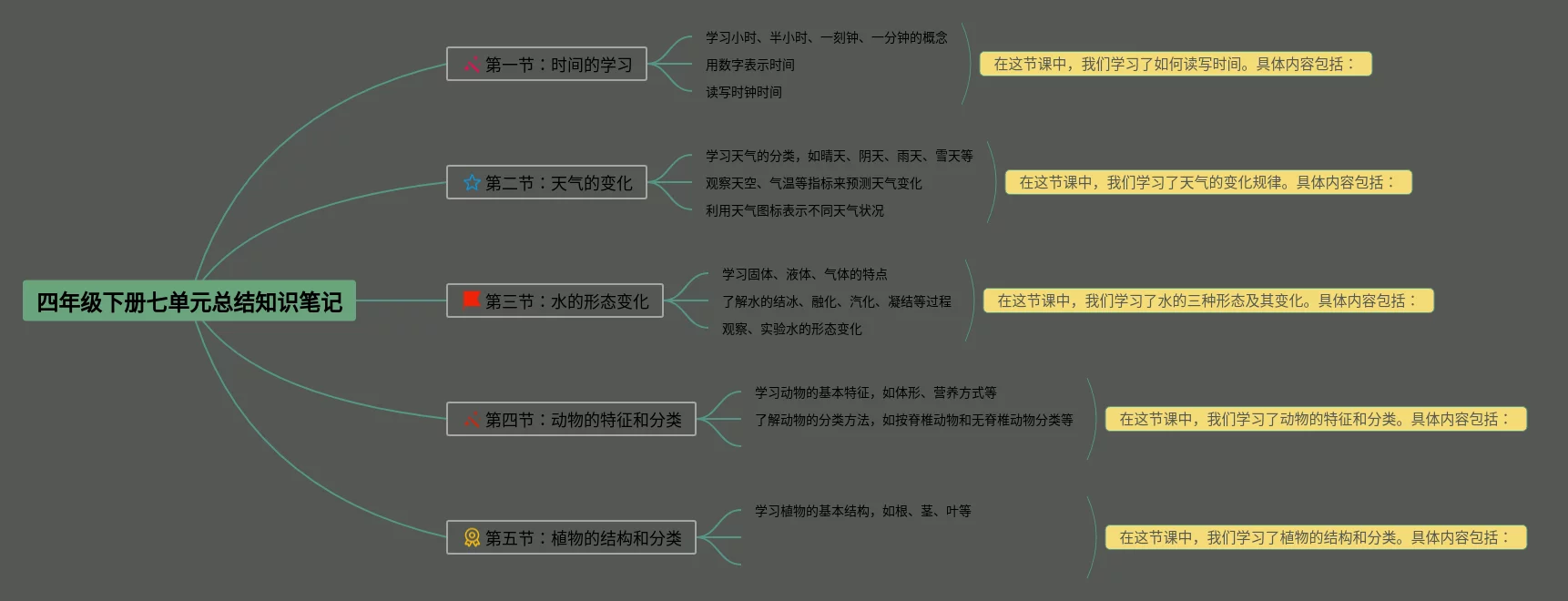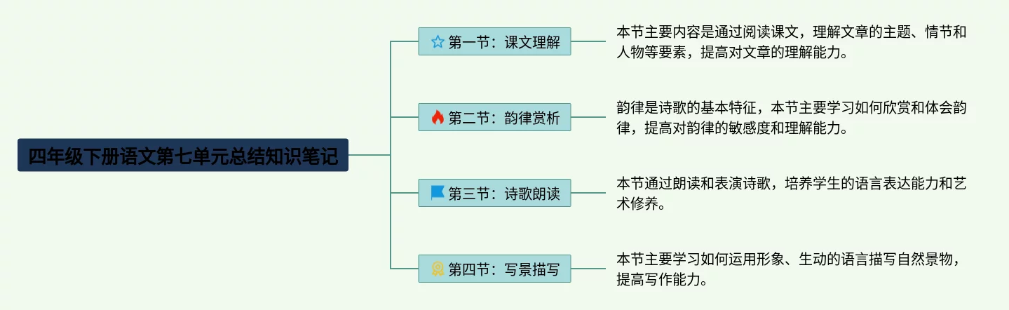 四年级下册七单元总结思维导图(21张高清晰可打印)