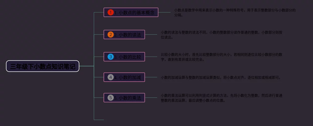 25张三年级下小数点思维导图合集,三年级下小数点思维导图,内容涵盖小数点的概念、小数点的读法、小数点的写法、小数点的运算等4个知识点,25张精选版,每张思维导图都非常简单,每张图片均精选版。