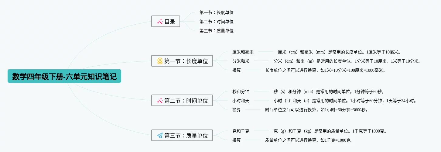 数学四年级下册六单元思维导图(25张附下载)