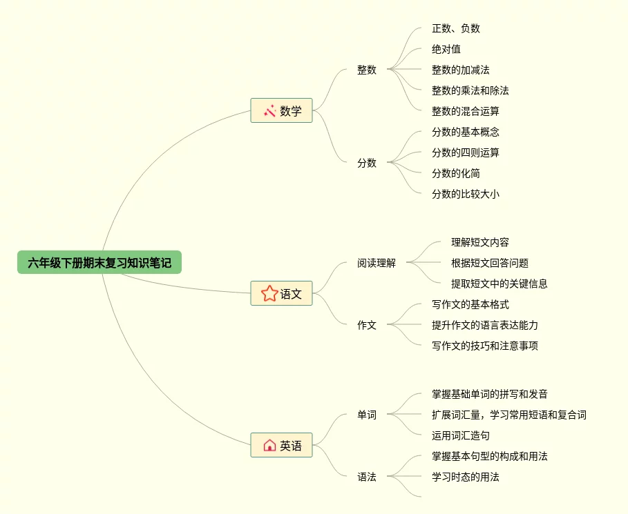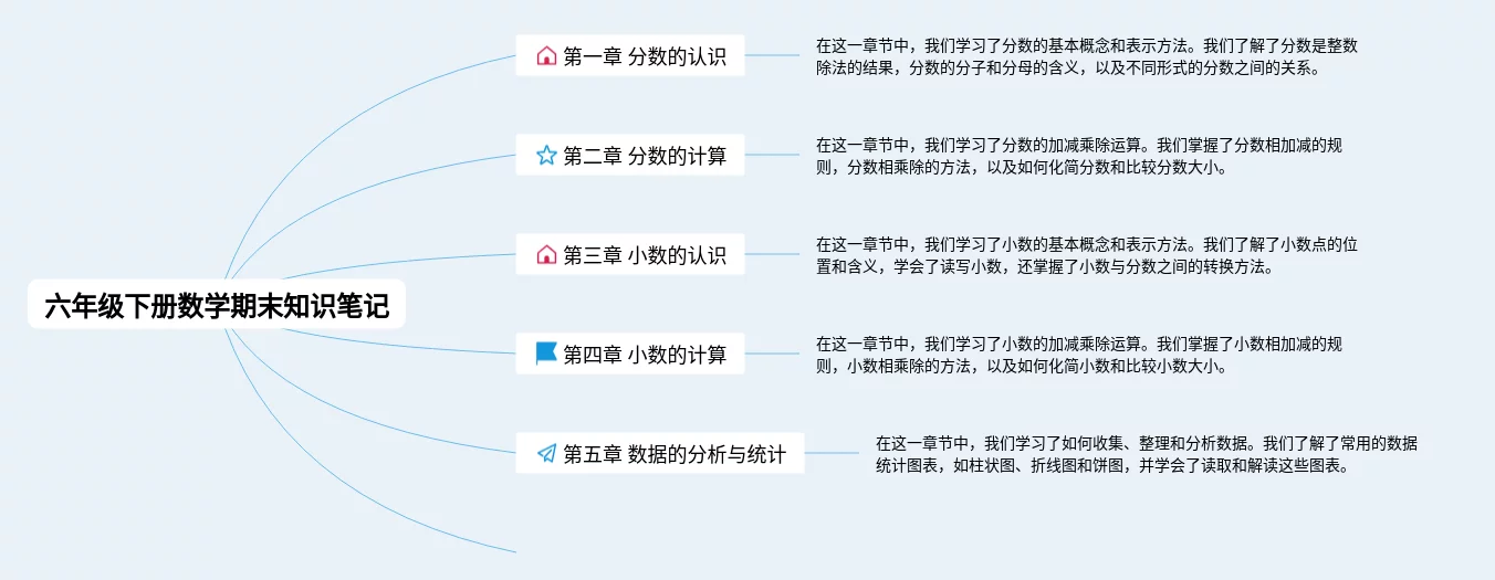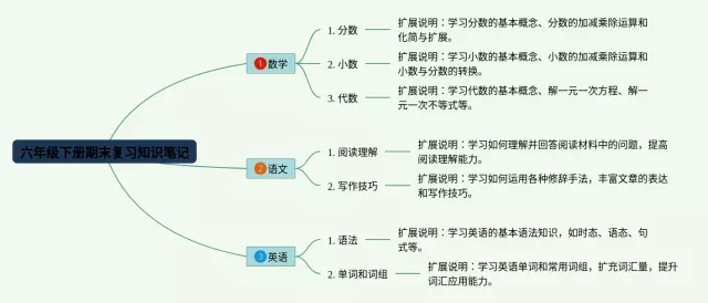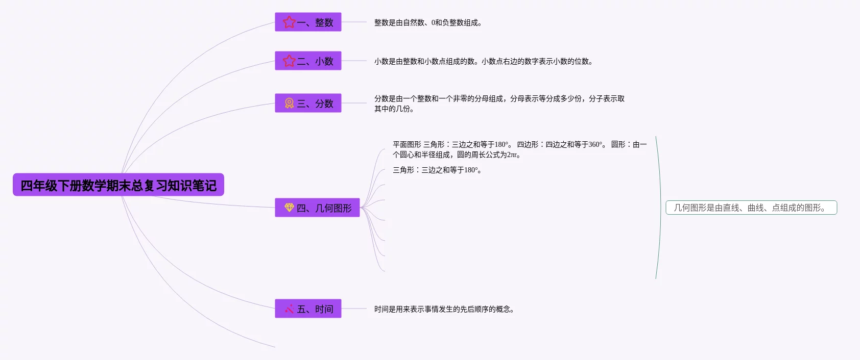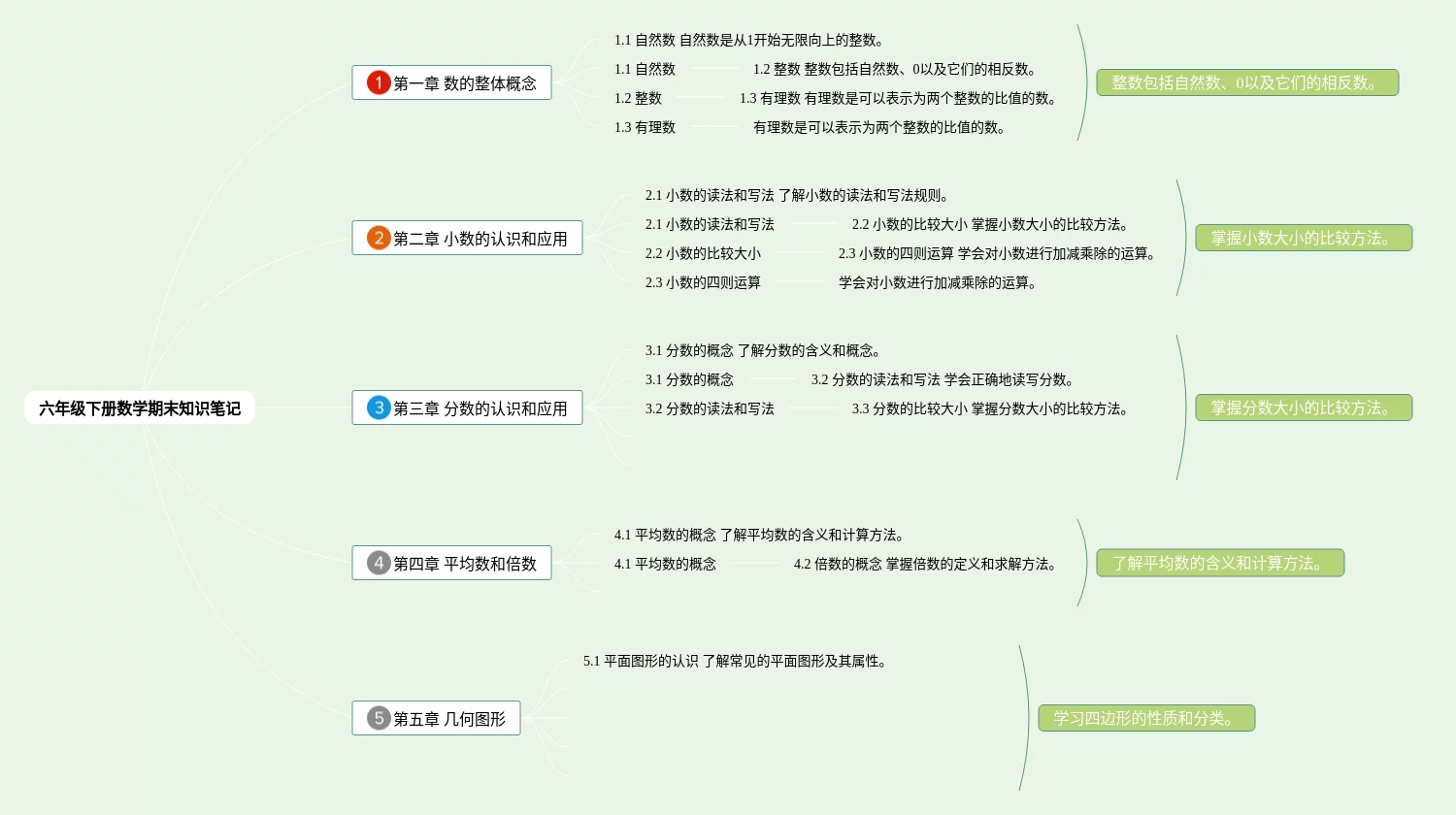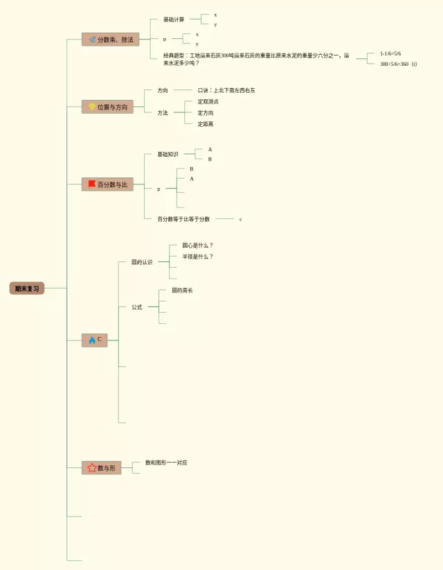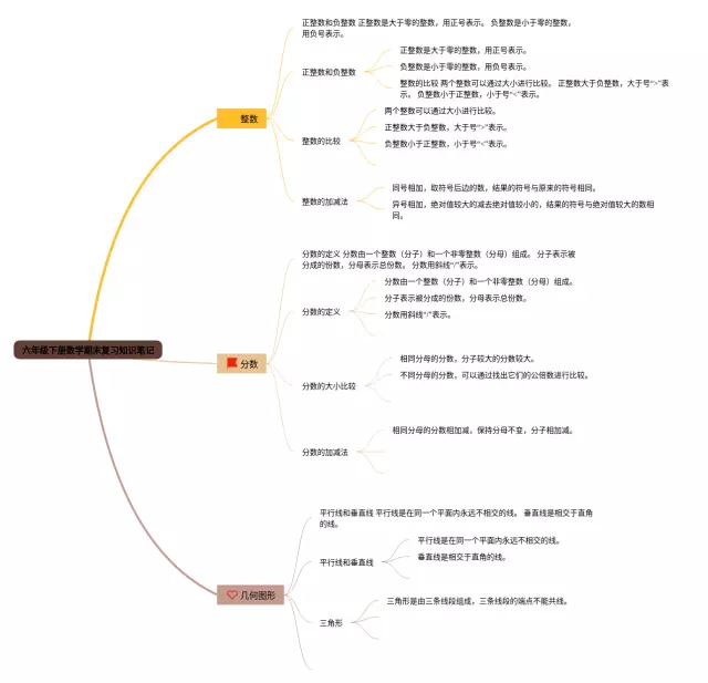 25张六年级下册数学期末复习思维导图合集,六年级下册数学期末复习思维导图,内容涵盖整数、小数、分数、几何图形、时间等6个部分,25张附下载,每张思维导图都非常漂亮,每张图片均附下载。