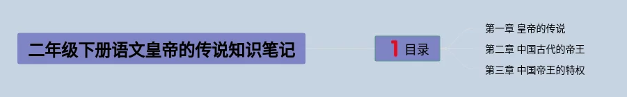 24张二年级皇帝的传说思维导图汇总,二年级皇帝的传说思维导图,内容涵盖目录、第一章 黄帝的传说、第二章 黄帝与蚩尤的战斗、第三章 黄帝的贡献等4个要点,24张可打印,每张思维导图都非常清晰,每张图片均可打印。