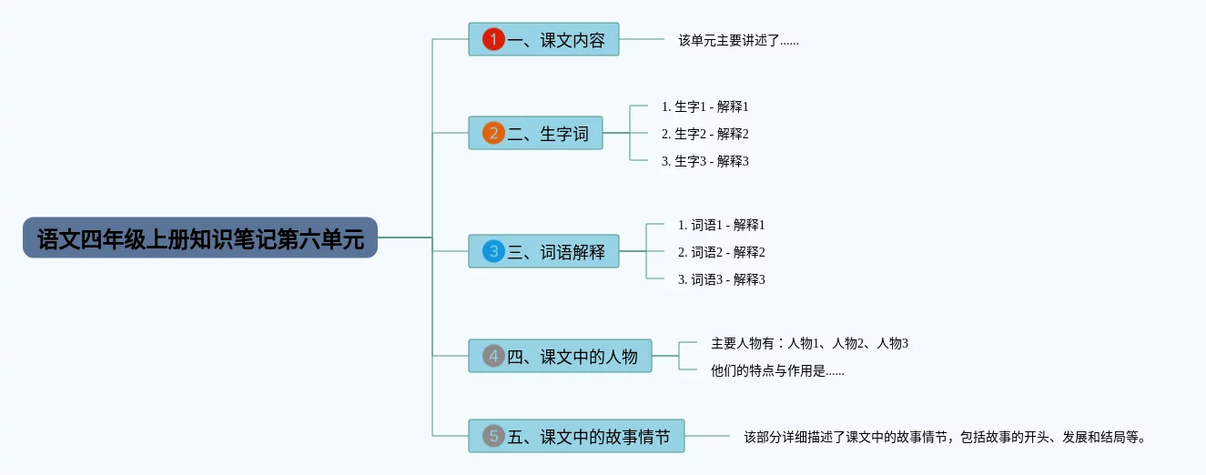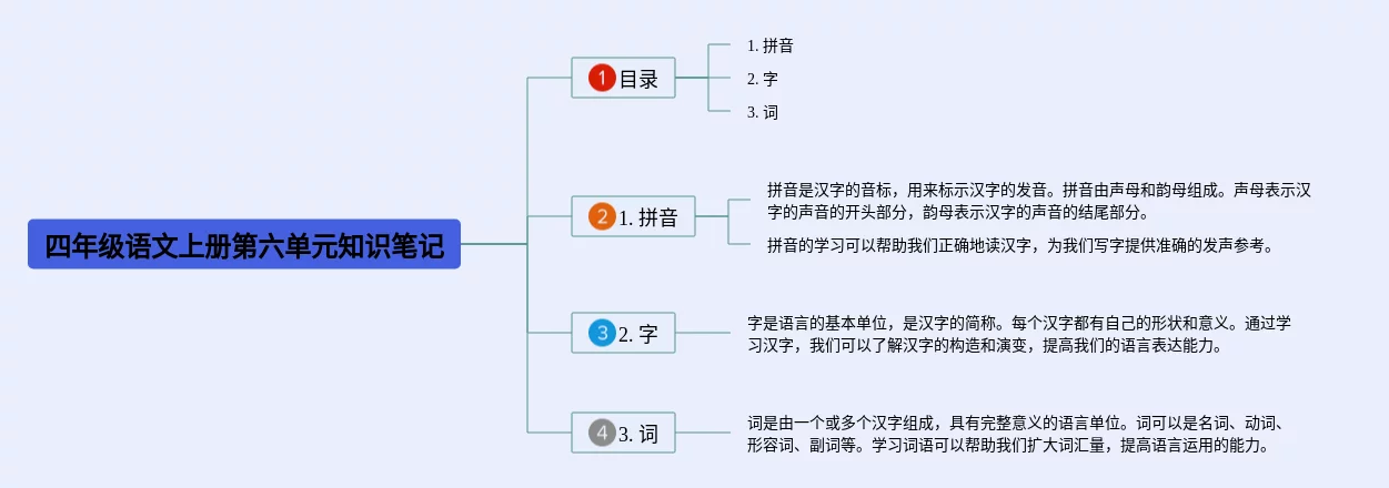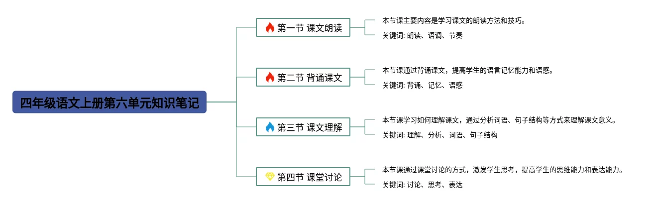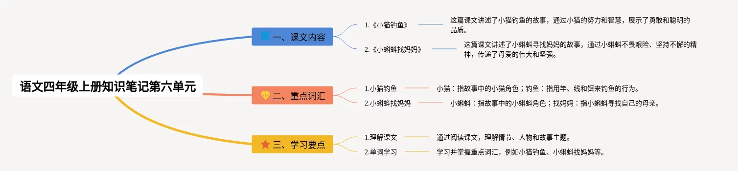 四年级上册第六单元思维导图汇总,四年级语文上册第六单元思维导图,内容涵盖课文内容、重点词汇、学习要点等3个方面,23张高清版,每张思维导图都非常清晰,每张图片均高清版。