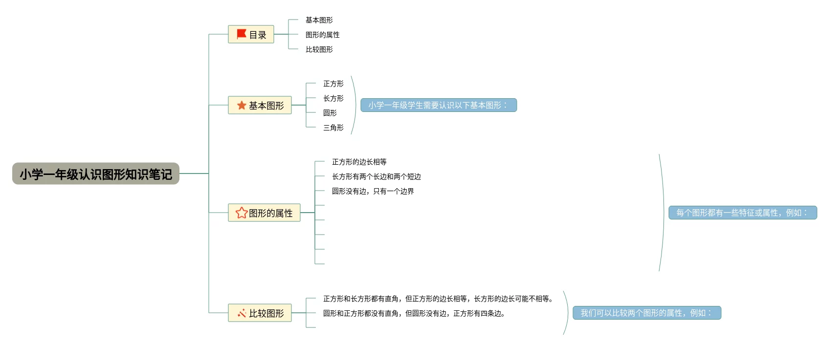 小学一年级认识图形思维导图(23张可打印)