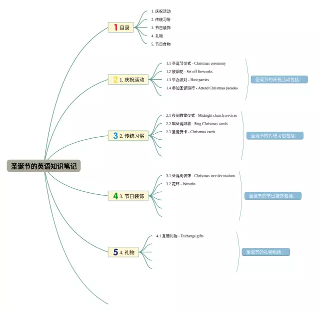20张圣诞节英语思维导图合集,圣诞节英语思维导图,内容涵盖圣诞元素、圣诞色彩、一些构思、2017年8月学习于《庞门正道》等4个知识点,20张附打印高清版,每张思维导图都非常清晰,每张图片均附打印高清版。