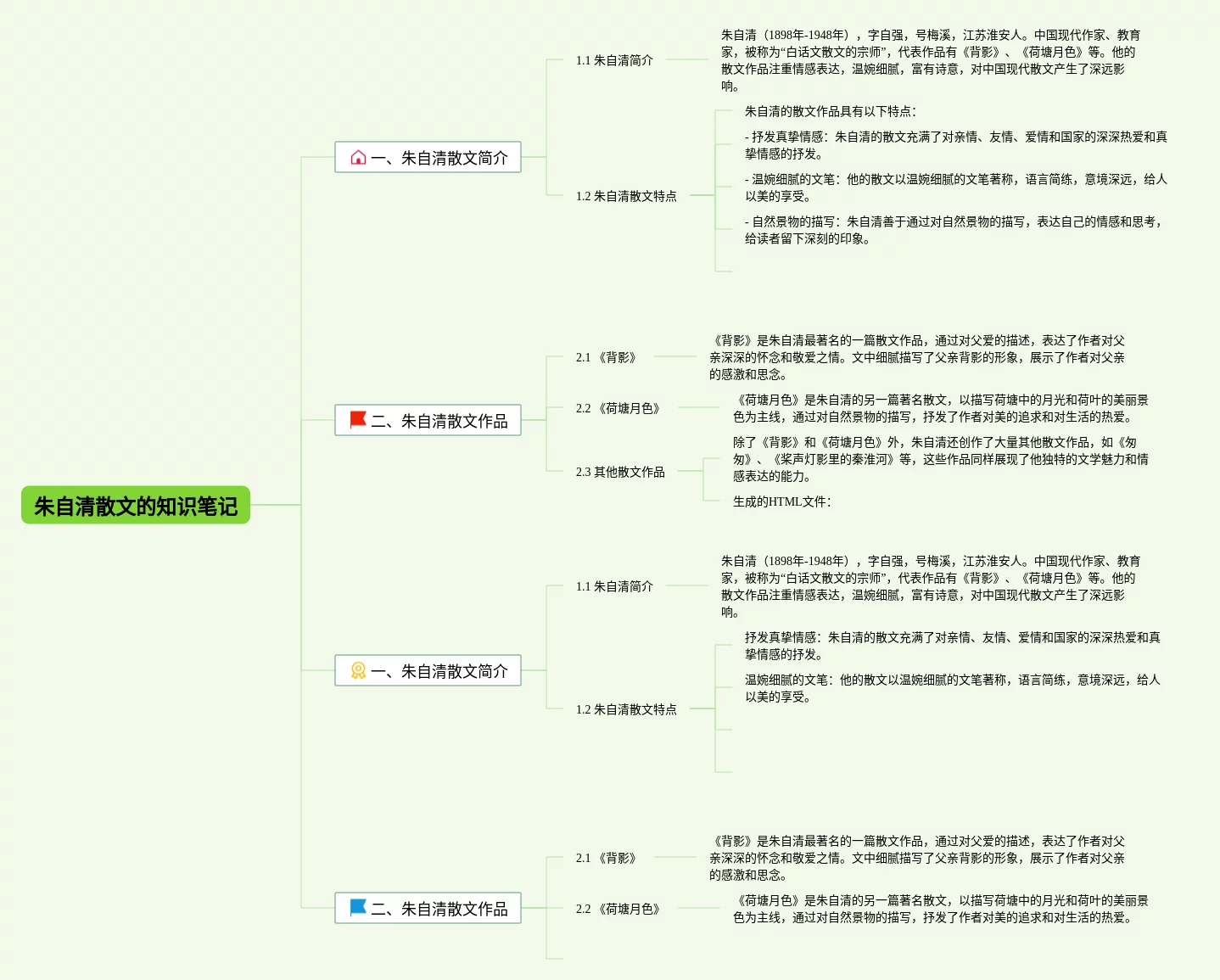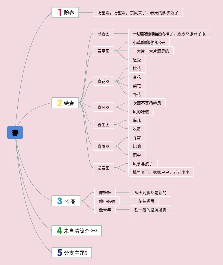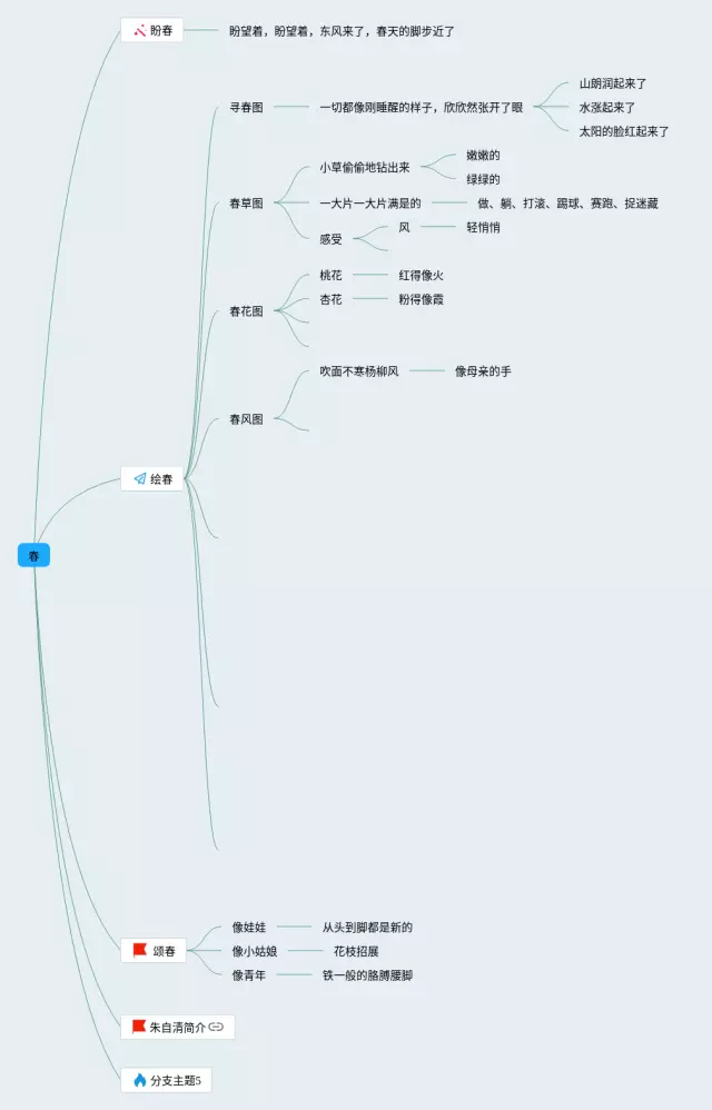 24张朱自清散文思维导图汇总,朱自清散文思维导图,内容涵盖盼春、绘春、 颂春、朱自清简介、分支主题5等5个要点,24张可下载,每张思维导图都非常简单,每张图片均可下载。
