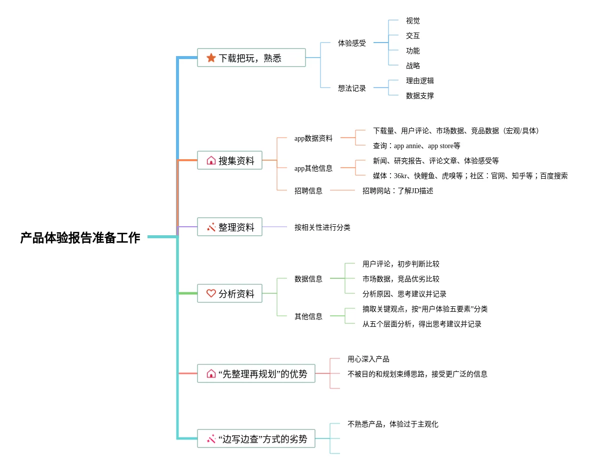 20张准备工作标准思维导图汇总,准备工作标准思维导图,内容涵盖下载把玩熟悉APP、搜集资料、整理资料、分析资料、“先整理再规划”的优势等6个要点,20张可下载,每张思维导图都非常清晰,每张图片均可下载。