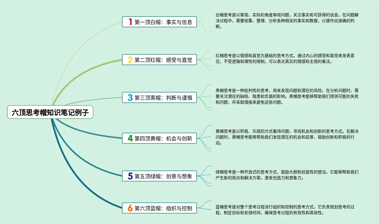 20张六顶思考帽思维导图例子合集,六顶思考帽思维导图例子,内容涵盖白色思考帽、绿色思考帽、思考帽、使用步骤、蓝色思考帽等7个要点,20张精选版,每张思维导图都非常简单,每张图片均精选版。