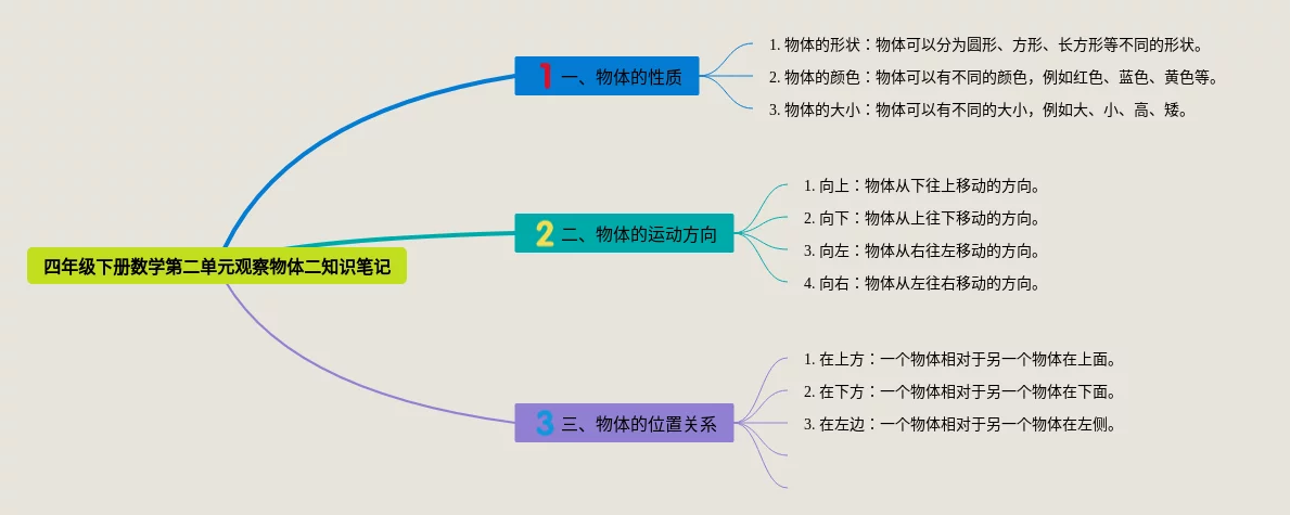 20张四年级下册数学第二单元观察物体二思维导图汇总,四年级下册数学第二单元观察物体二思维导图,内容涵盖第一章 观察物体的形状和位置、第二章 观察物体的大小、第三章 观察物体的时间等3个要点,20张值得收藏,每张思维导图都非常清晰,每张图片均值得收藏。