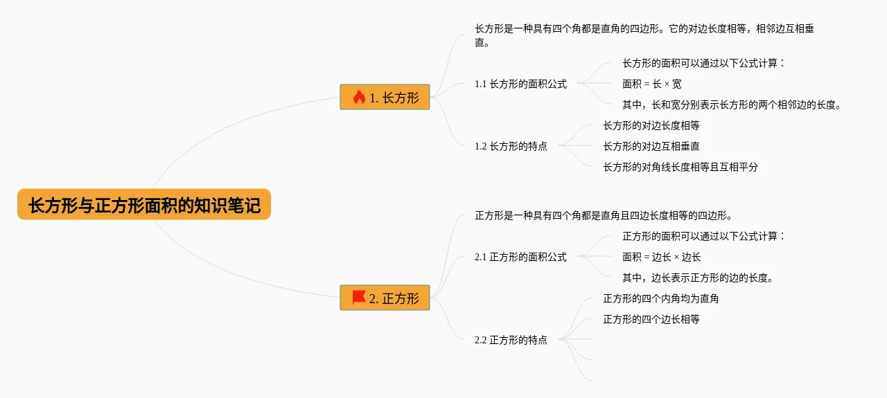 24张长方形与正方形面积思维导图汇总,长方形与正方形面积思维导图,内容涵盖正方形、长方形等2个知识点,24张高清晰可打印,每张思维导图都非常漂亮,每张图片均高清晰可打印。