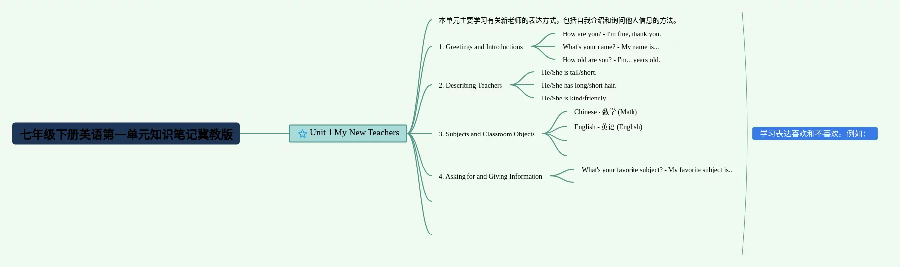 七年级下册英语第一单元思维导图冀教版(22张可下载)
