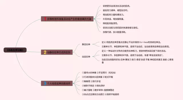 22张动态思维导图汇总,动态思维导图,内容涵盖动静态拉伸方式的区别、个人动态拉伸训练动作等2个要点,22张附下载,每张思维导图都非常简单,每张图片均附下载。