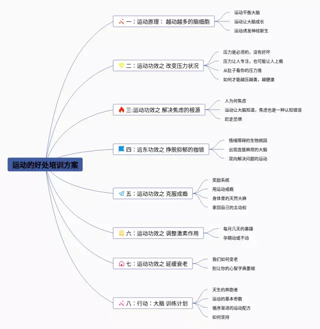 24张思维导图的好处汇总,思维导图的好处,内容涵盖运动原理 越动越多的脑细胞、运动功效之 改变压力状况、运动功效之 解决焦虑的根源、远东功效之 挣脱抑郁的枷锁、运动功效之 克服成瘾等8个要点,24张值得收藏,每张思维导图都非常漂亮,每张图片均值得收藏。