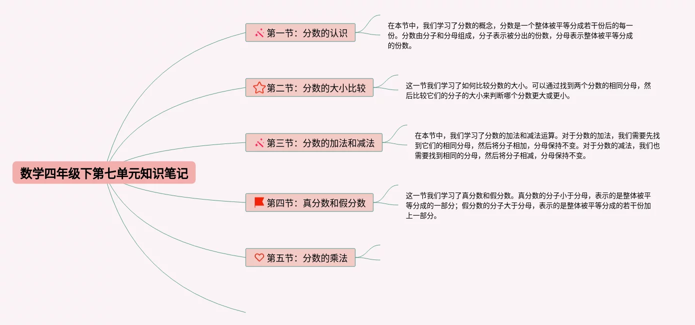 小学四年级第七单元思维导图汇总,小学数学四年级第七单元思维导图,内容涵盖小数的认识、小数的读写、小数的比较、小数的加减法、小数的乘法等6个知识点,22张值得收藏,每张思维导图都非常清晰,每张图片均值得收藏。