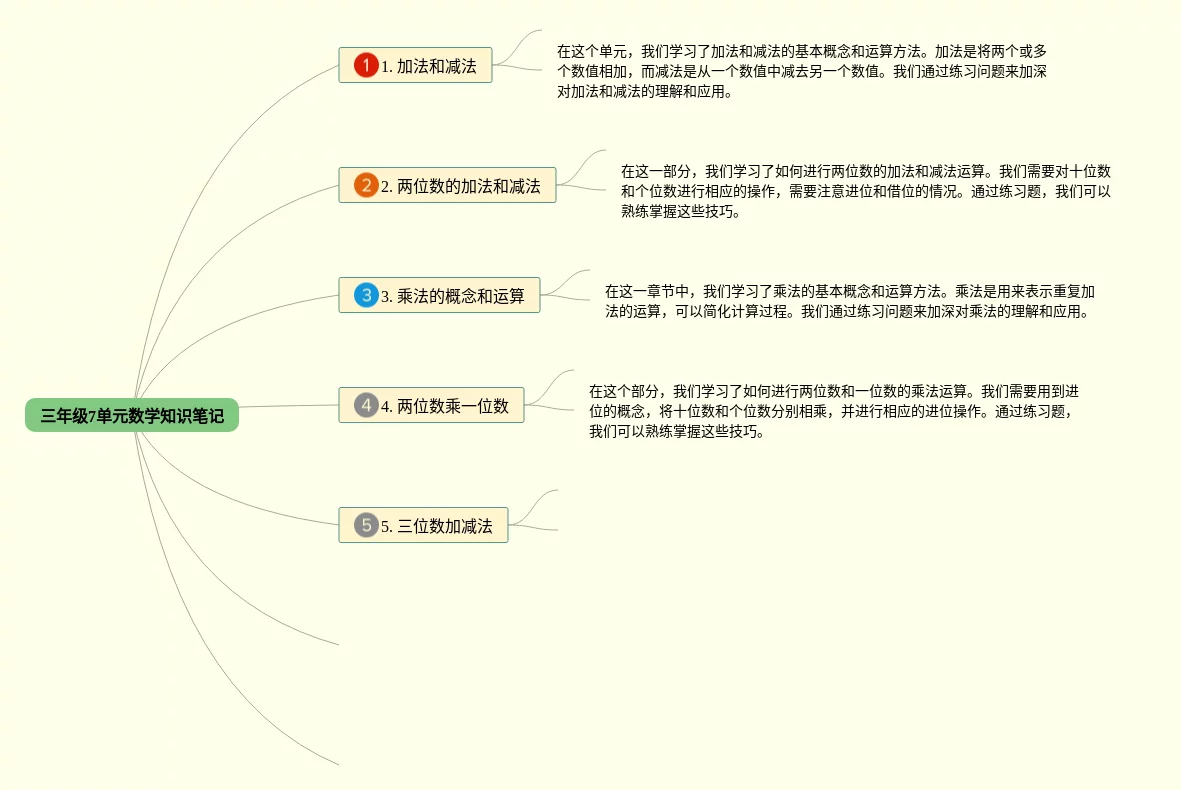 23张数学三年级7单元思维导图合集,数学三年级7单元思维导图,内容涵盖加减法、三位数的加法和减法、乘法、三位数和两位数的乘法、除法等6个方面,23张高清版,每张思维导图都非常漂亮,每张图片均高清版。