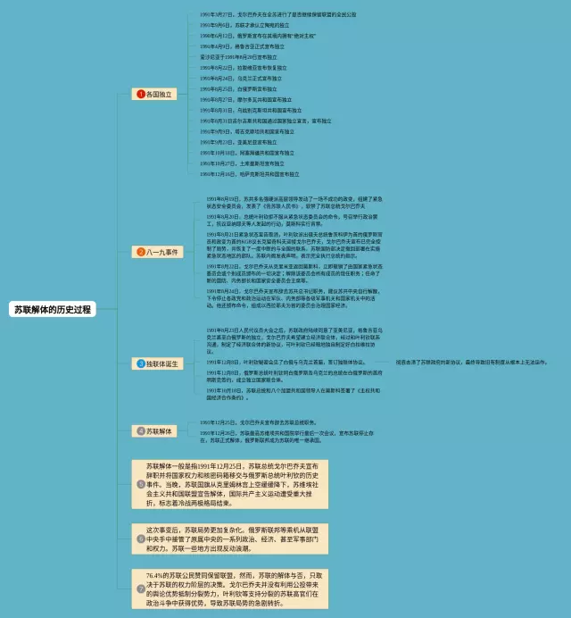 21张苏联的社会建设思维导图合集,苏联的社会建设思维导图,内容涵盖各国独立、八一九事件、独联体诞生、苏联解体等4个方面,21张值得收藏,每张思维导图都非常漂亮,每张图片均值得收藏。