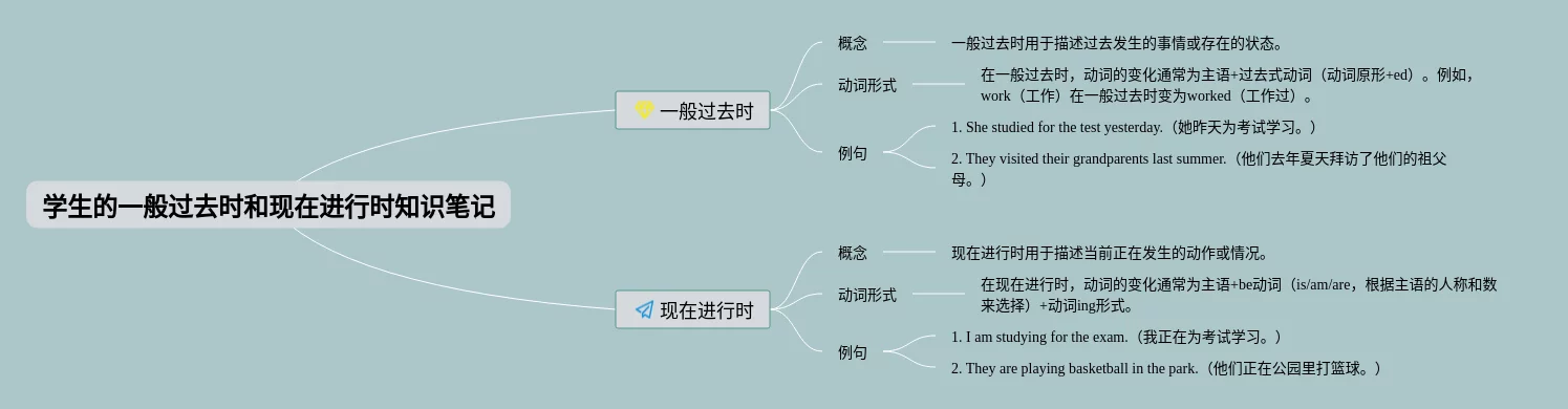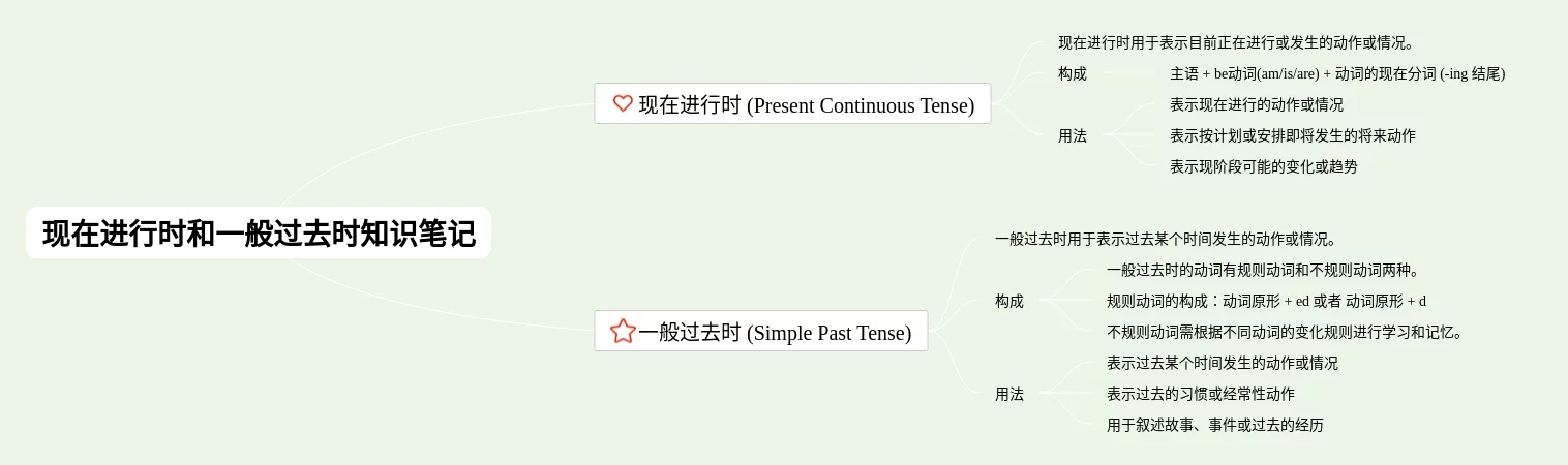 一般过去时和现在进行时的思维导图(22张附下载)