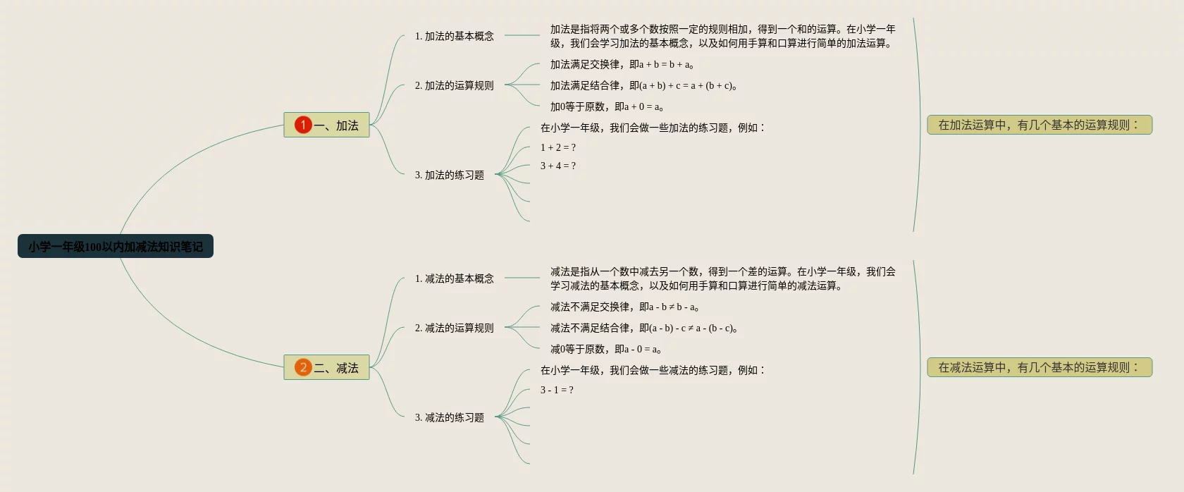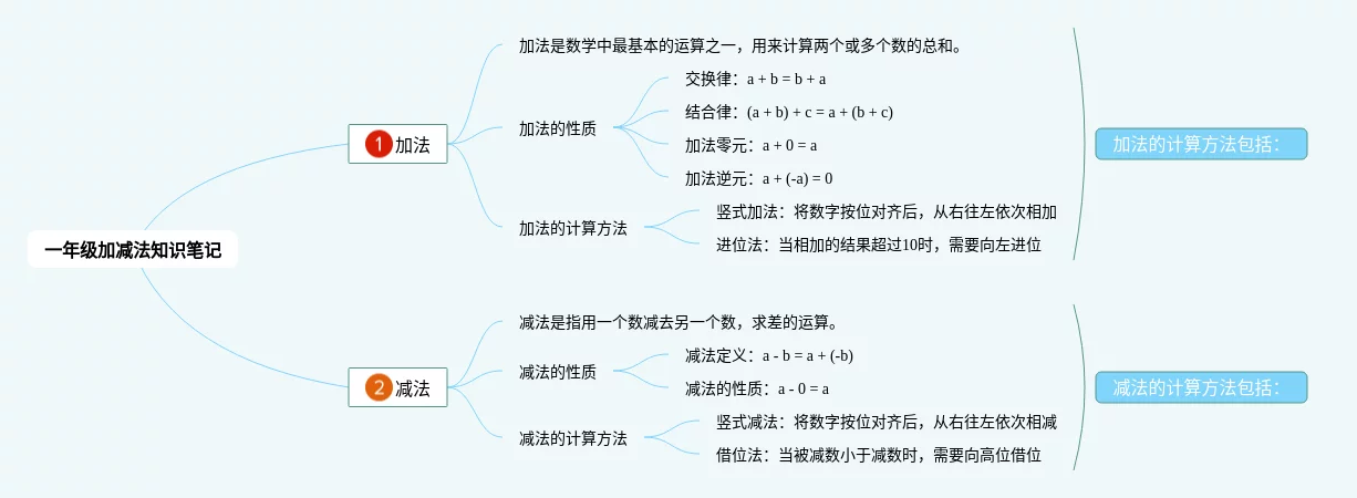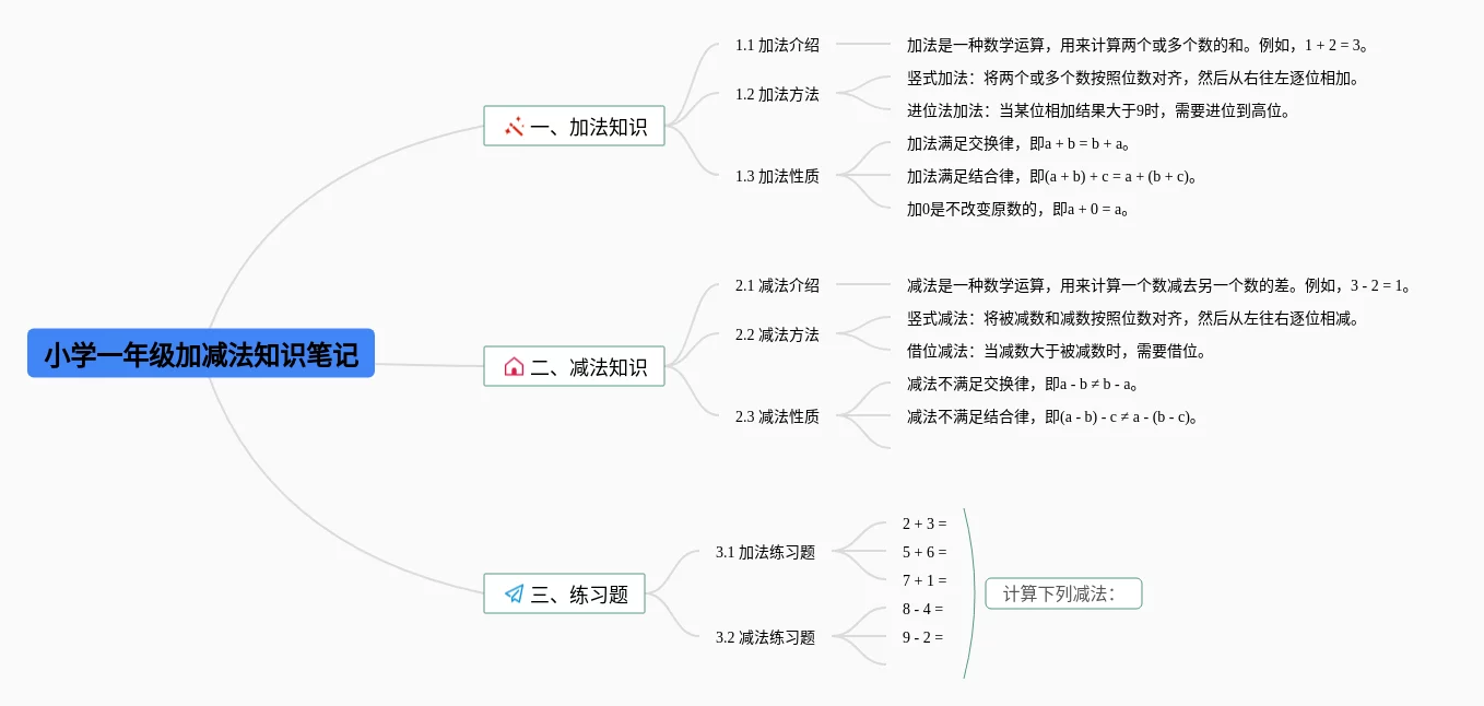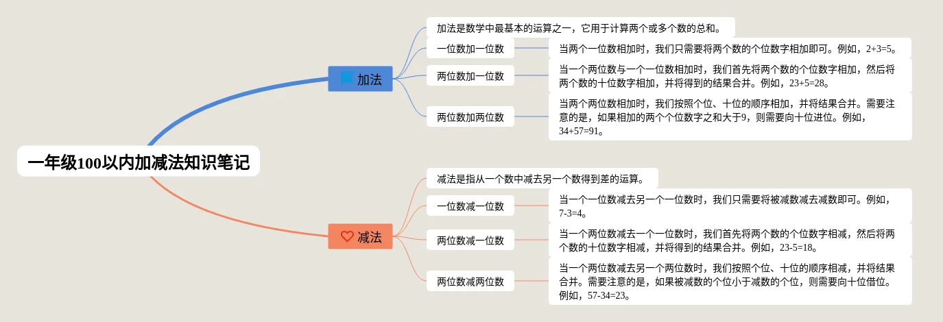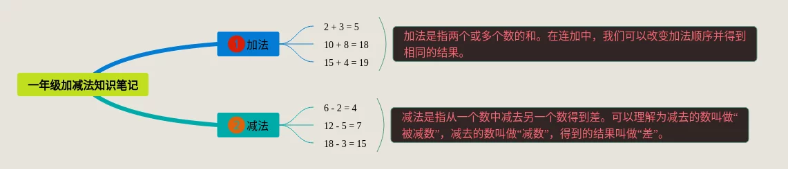 22张小学一年级加减法思维导图合集,小学一年级加减法思维导图,内容涵盖加法、减法等2个要点,22张附打印高清版,每张思维导图都非常漂亮,每张图片均附打印高清版。
