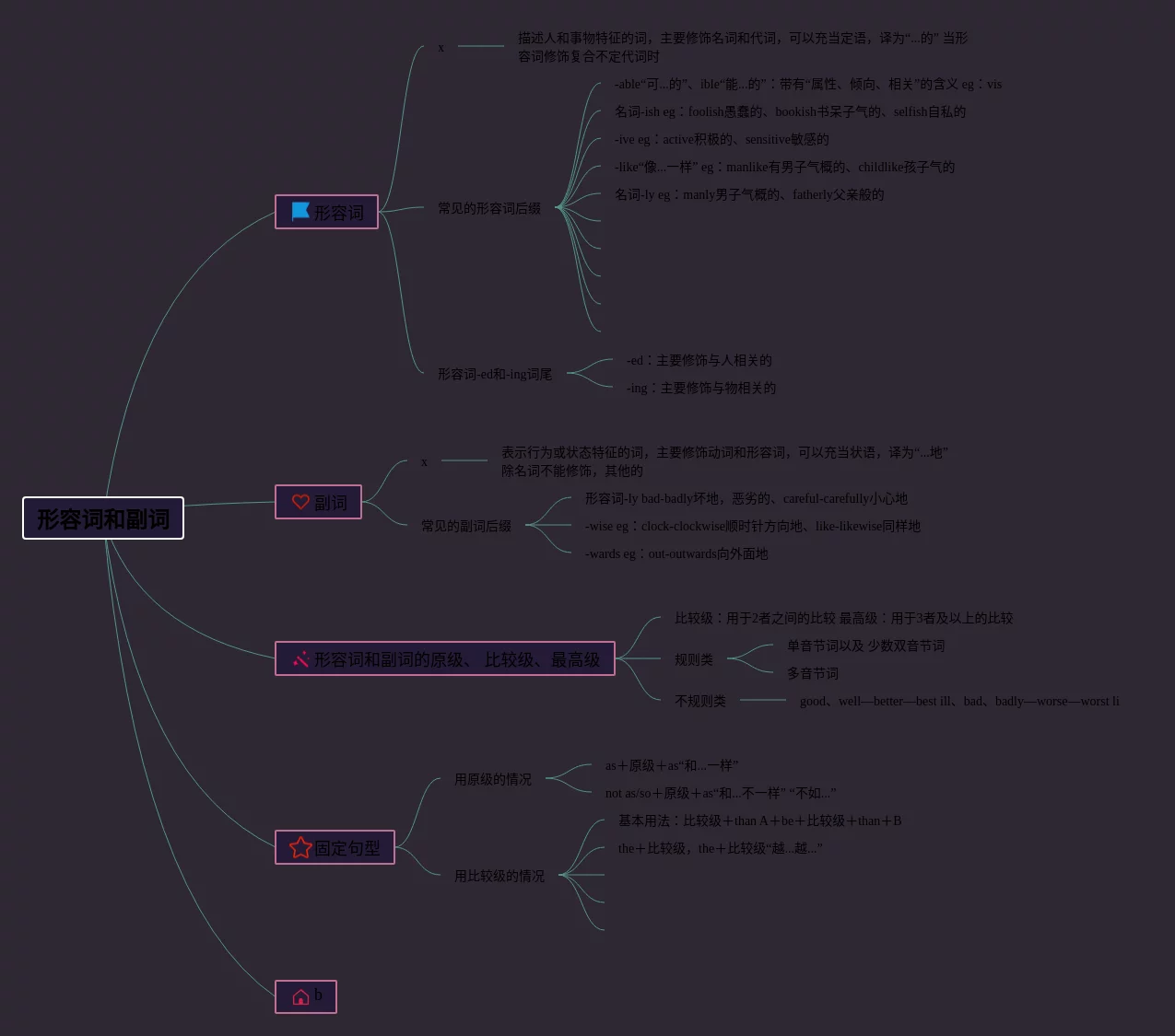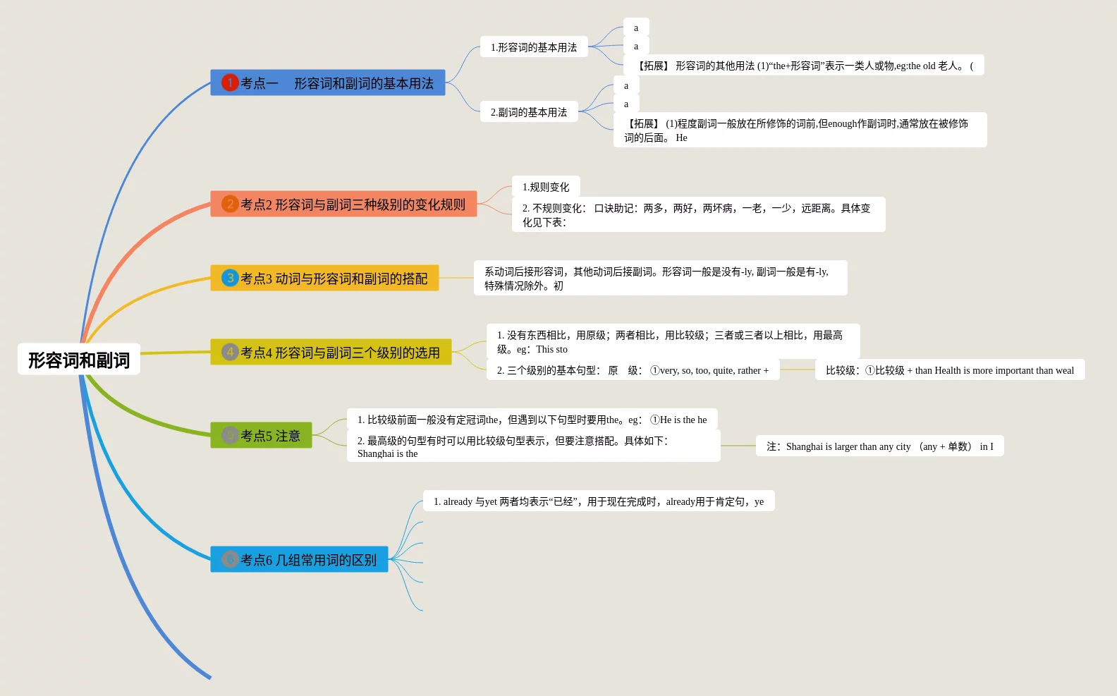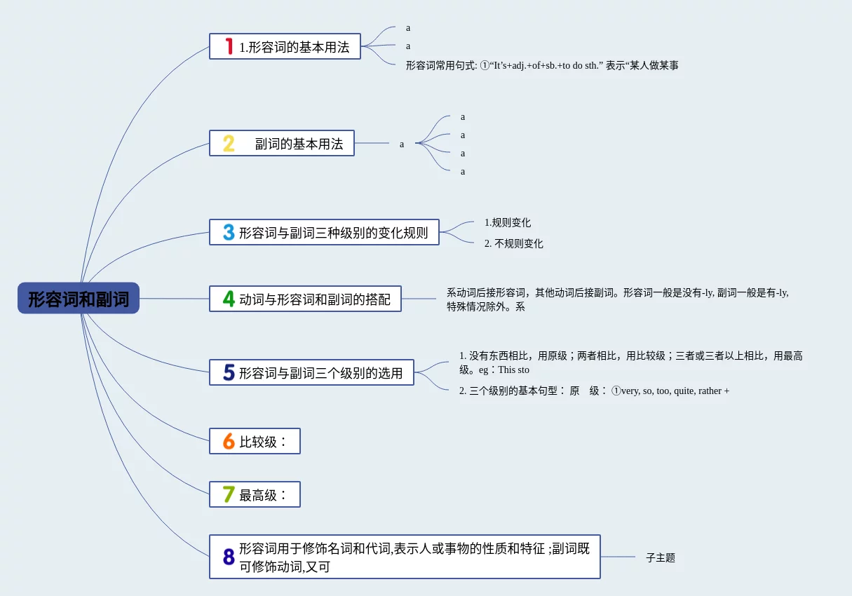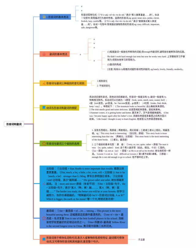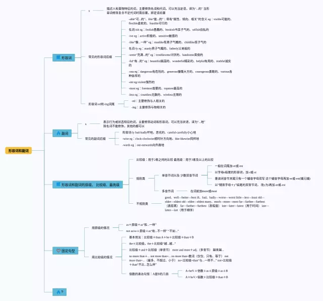 23张形容词和副词思维导图合集,形容词和副词思维导图,内容涵盖考点5 注意、考点6 几组常用词的区别等2个要点,23张附下载,每张思维导图都非常清晰,每张图片均附下载。