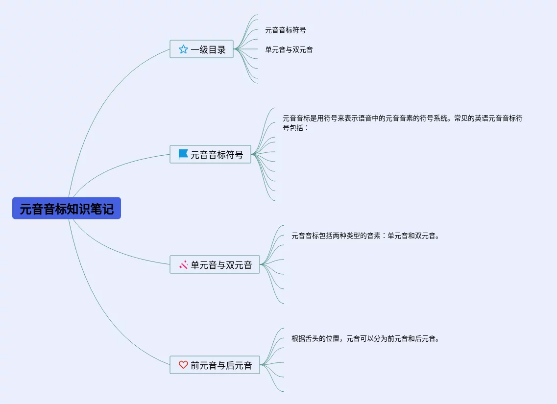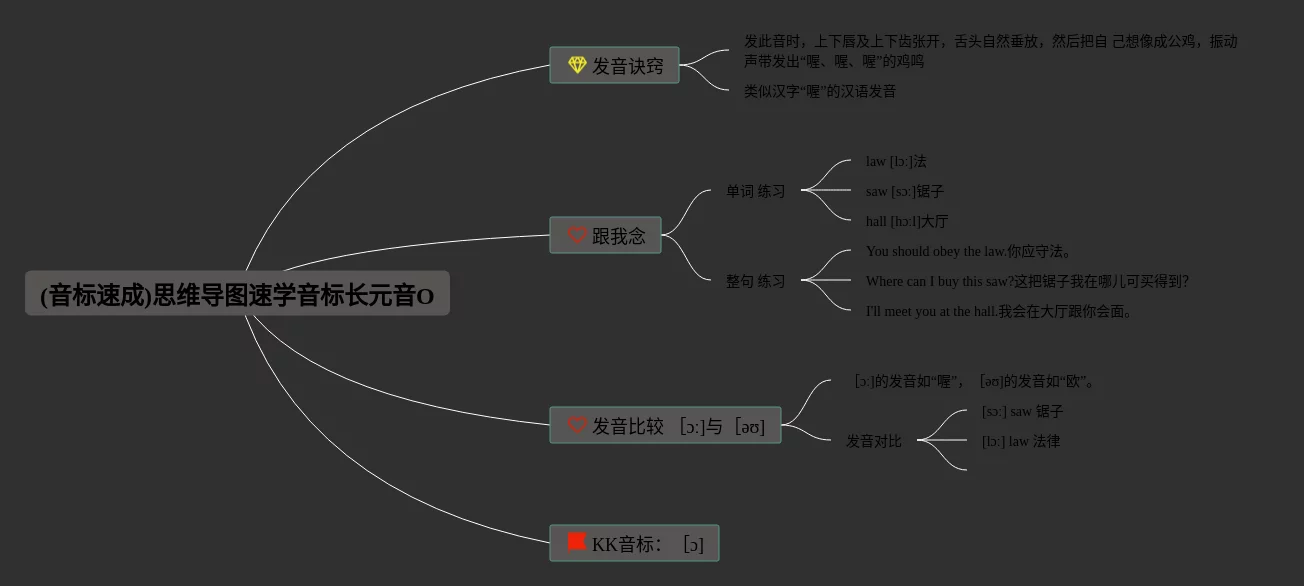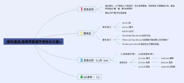 22张元音音标思维导图汇总,元音音标思维导图,内容涵盖发音诀窍、跟我念、发音比较[ɔː]与[əʊ]、KK音标[ɔ]等4个部分,22张高清晰可打印,每张思维导图都非常简单,每张图片均高清晰可打印。