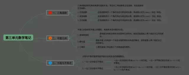 23张五下数学书第三单元思维导图合集,五下数学书第三单元思维导图,内容涵盖三角函数、平面几何、方程与不等式等3个部分,23张高清晰可打印,每张思维导图都非常简单,每张图片均高清晰可打印。