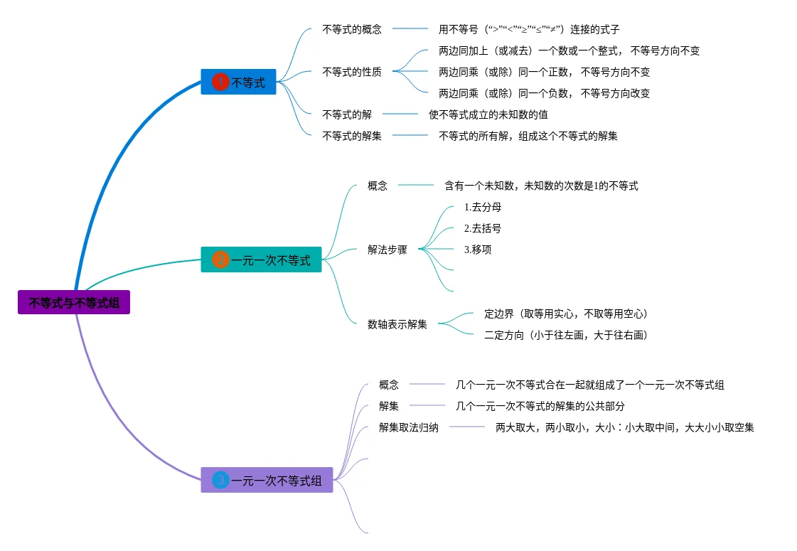 22张七年级数学下册不等式思维导图汇总,七年级数学下册不等式思维导图,内容涵盖一元二次不等式求解过程、高次不等式、基本不等式、线性规划、基本初等函数不等式等8个知识点,22张高清版,每张思维导图都非常简单,每张图片均高清版。
