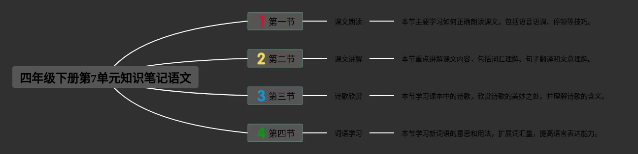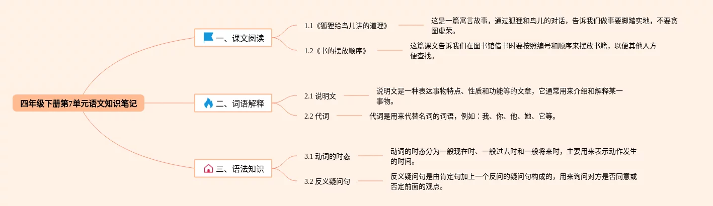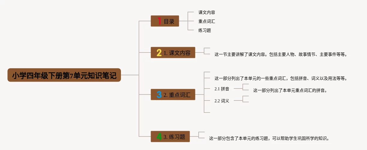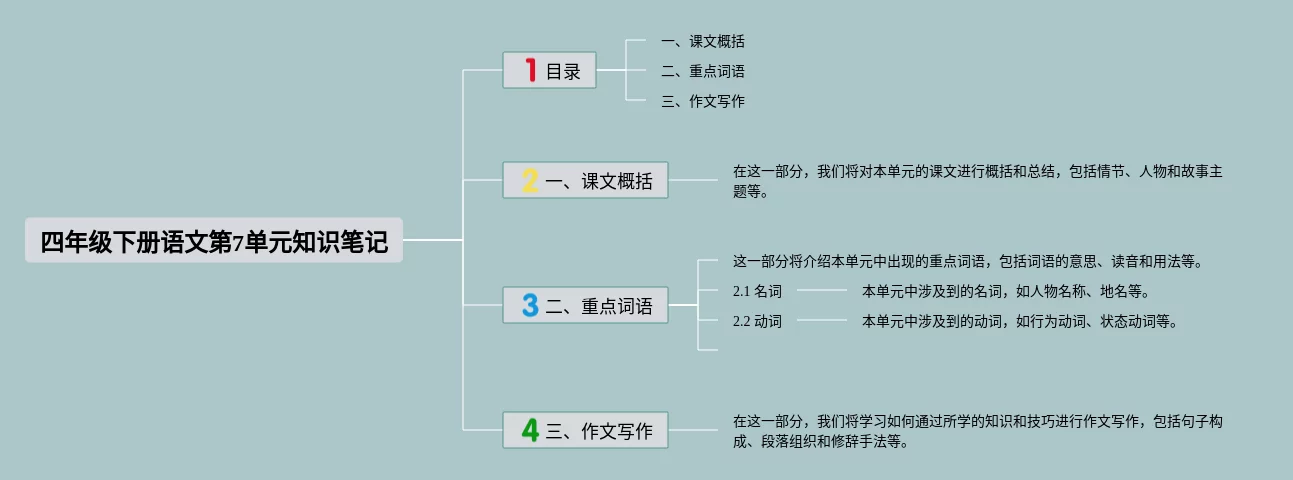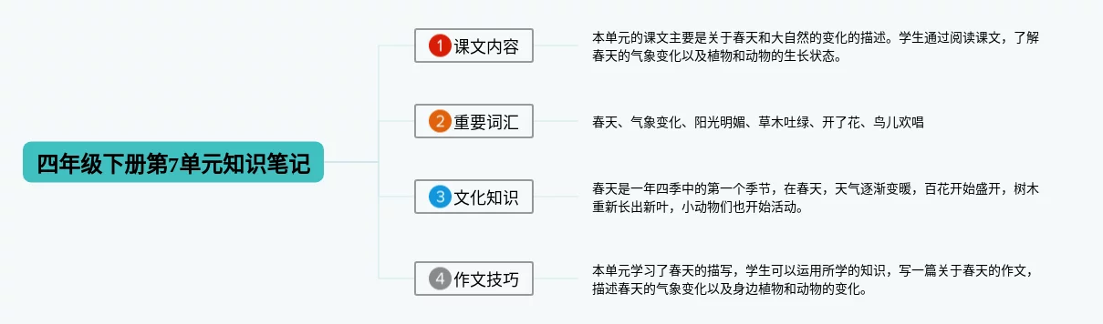 20张四年级下册第7单元的思维导图合集,四年级下册第7单元的思维导图,内容涵盖标题、标题的分类、标题的设计要点等3个方面,20张高清晰可打印,每张思维导图都非常简单,每张图片均高清晰可打印。