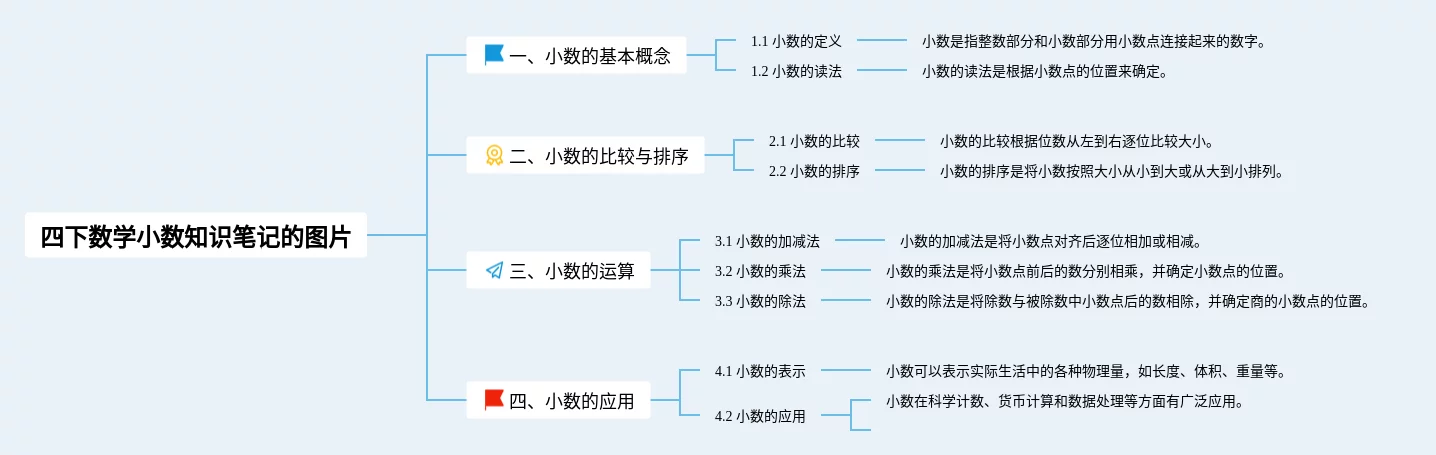25张四下数学小数思维导图简单汇总,四下数学小数思维导图简单,内容涵盖小数的概念、小数的读法、小数的比较、小数的运算等4个知识点,25张附打印高清版,每张思维导图都非常清晰,每张图片均附打印高清版。