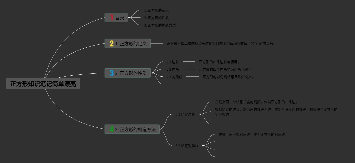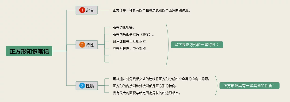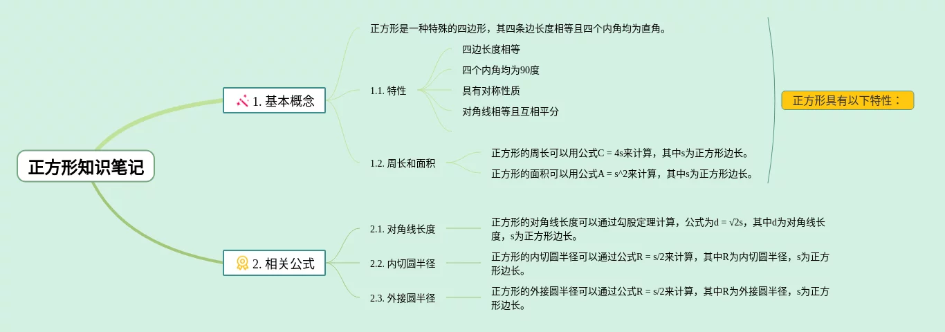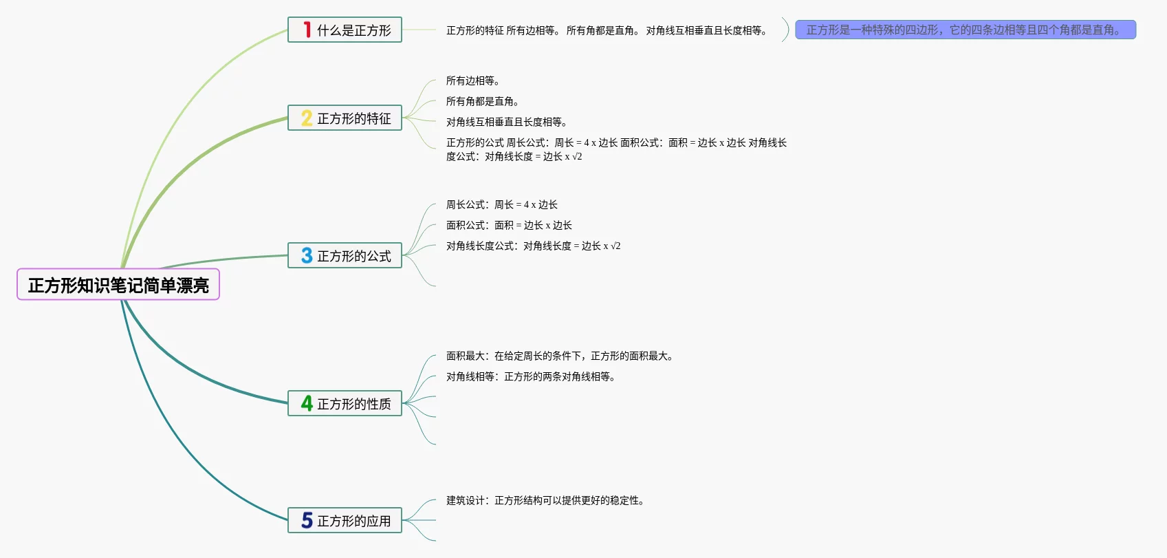 21张正方形思维导图简单漂亮合集,正方形思维导图简单漂亮,内容涵盖目录、1. 正方形的定义、2. 正方形的性质、3. 正方形的构造方法等4个知识点,21张高清晰可打印,每张思维导图都非常清晰,每张图片均高清晰可打印。