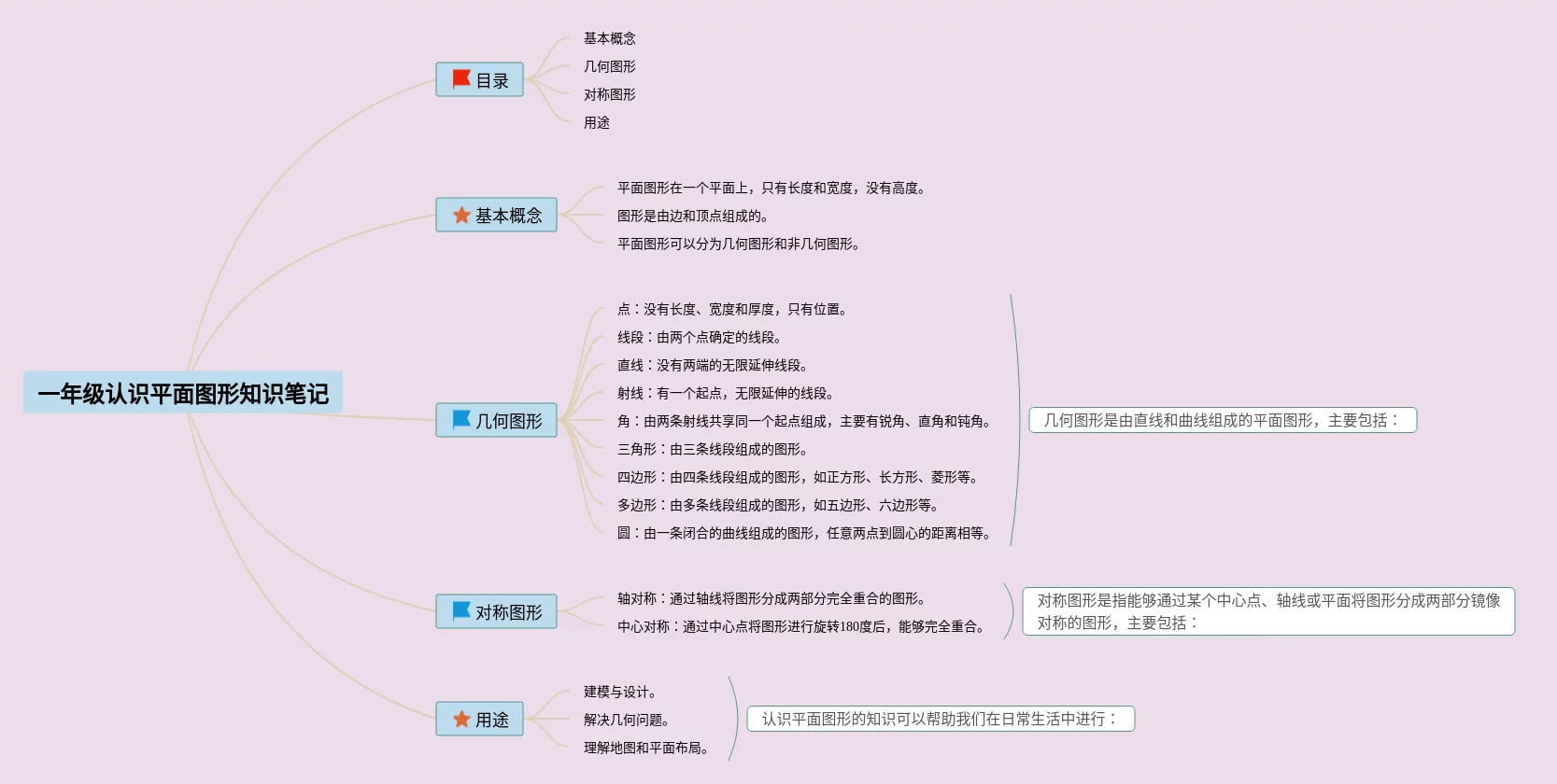 25张平面图形思维导图一年级汇总,平面图形思维导图一年级,内容涵盖一级目录、一级目录等2个部分,25张可下载,每张思维导图都非常漂亮,每张图片均可下载。