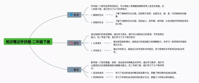 22张二年级下册思维导图手抄报合集,二年级下册思维导图手抄报,内容涵盖新学期 新梦想 开学啦、业精于勤、业精于勤、约定行为规范共同制定班规、紧抓程序细节发挥班规作用等5个部分,22张附下载,每张思维导图都非常漂亮,每张图片均附下载。