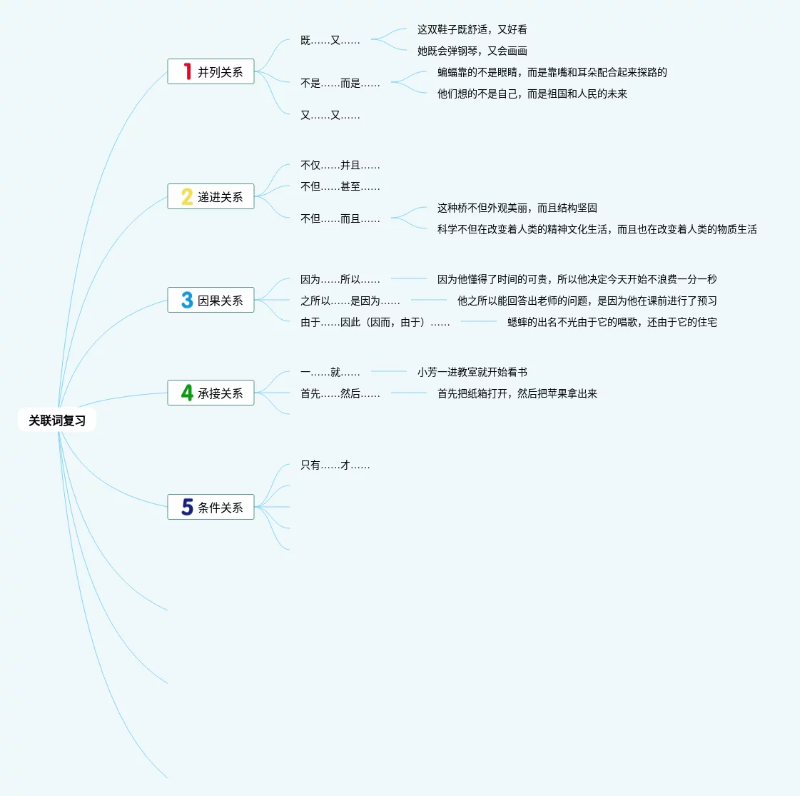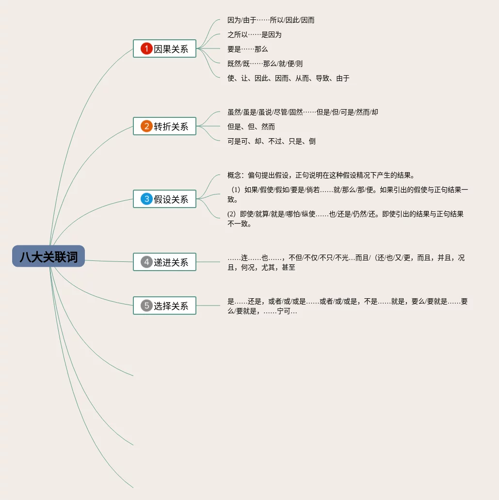 24张关联词的思维导图合集,关联词的思维导图,内容涵盖因果关系、转折关系、假设关系、递进关系、选择关系等8个部分,24张附下载,每张思维导图都非常清晰,每张图片均附下载。
