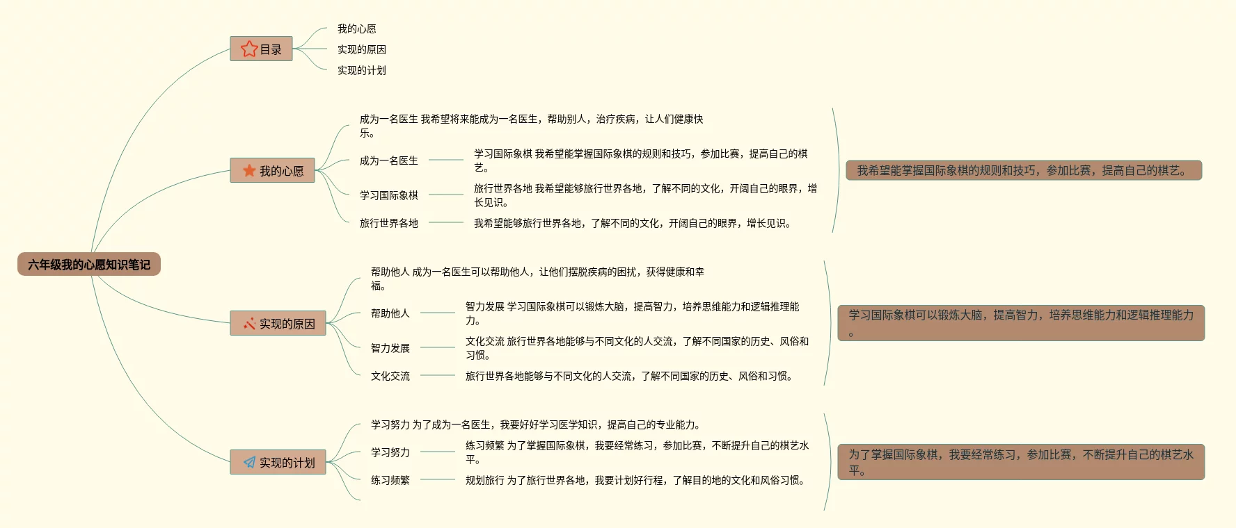 24张六年级我的心愿思维导图汇总,六年级我的心愿思维导图,内容涵盖目录、我的心愿、实现的原因、实现的计划等4个要点,24张值得收藏,每张思维导图都非常清晰,每张图片均值得收藏。