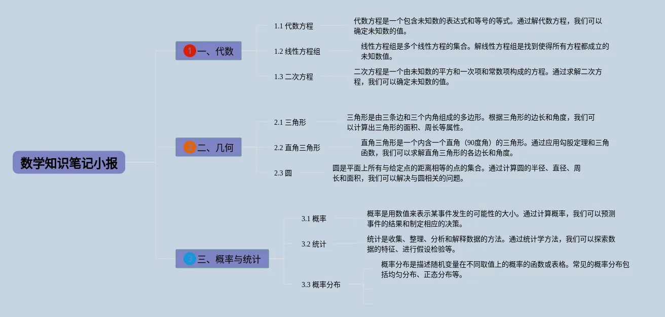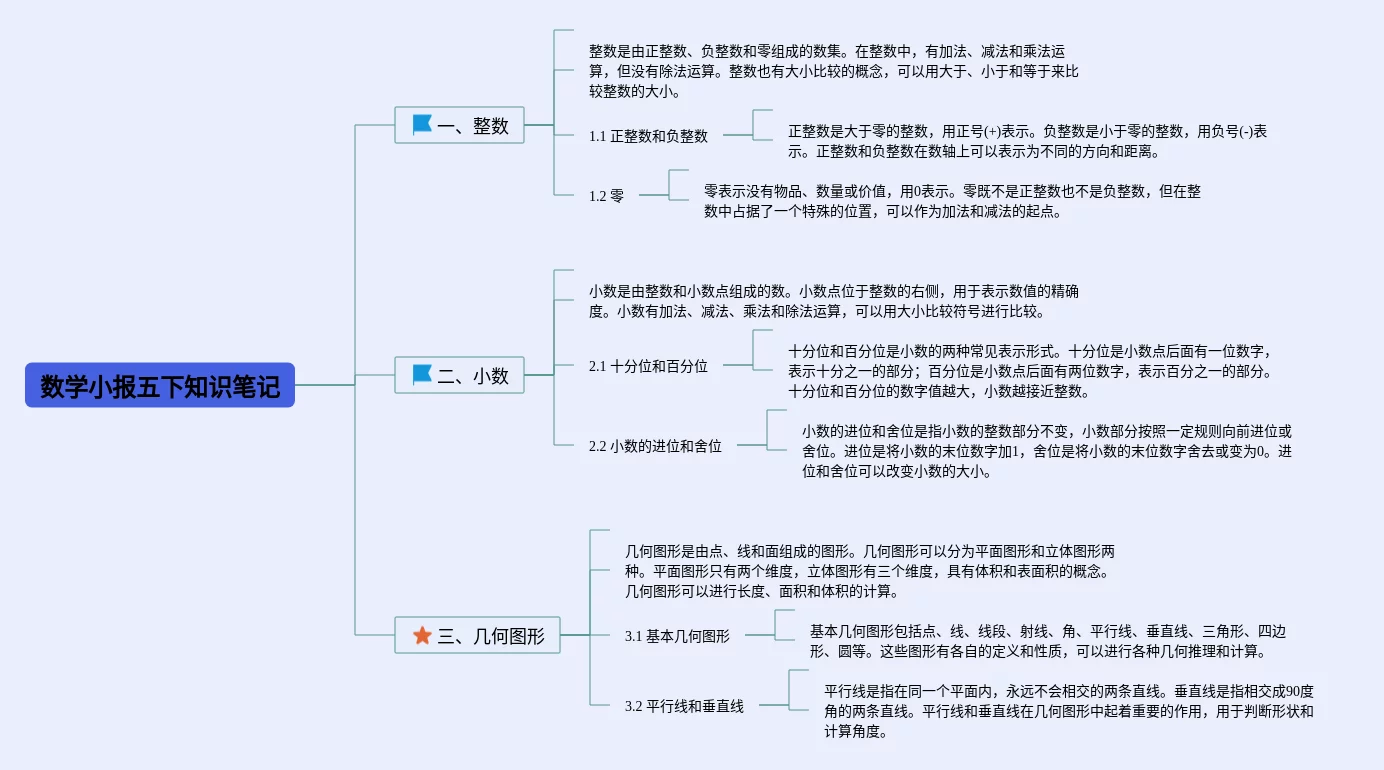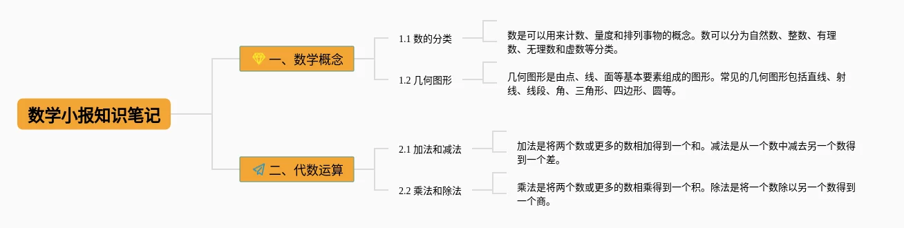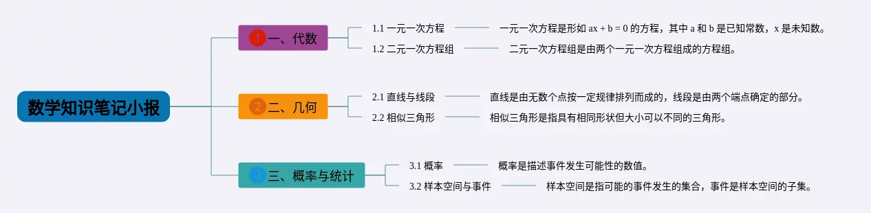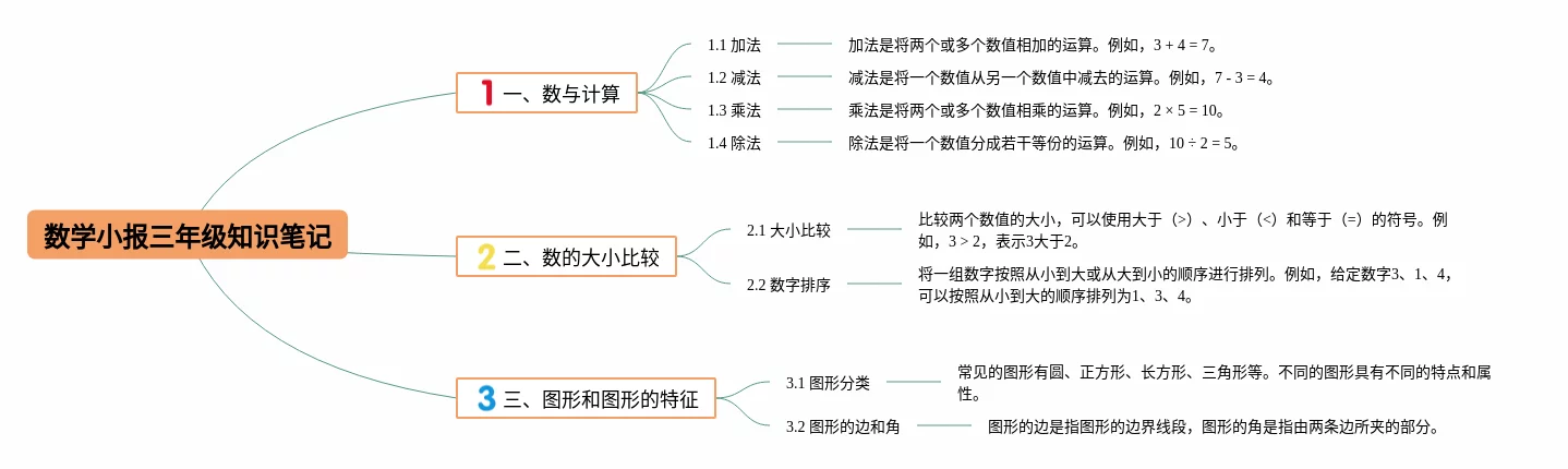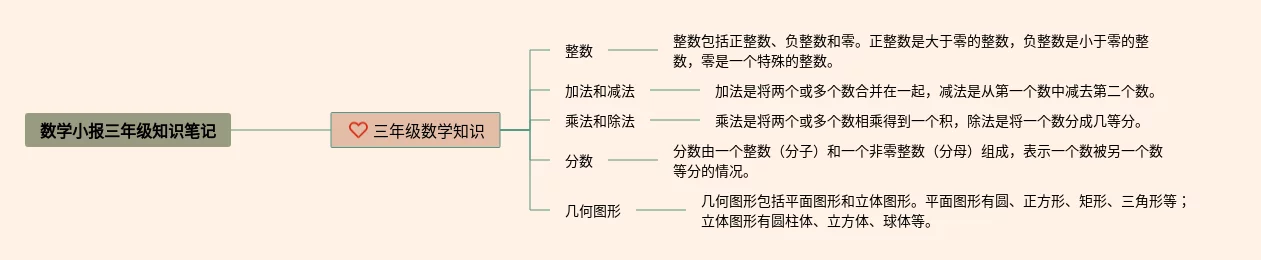 22张数学小报三年级思维导图汇总,数学小报三年级思维导图,内容涵盖1. 数学概述、2. 数的分类、3. 代数学、4. 几何学、5. 概率与统计等5个知识点,22张高清晰可打印,每张思维导图都非常漂亮,每张图片均高清晰可打印。