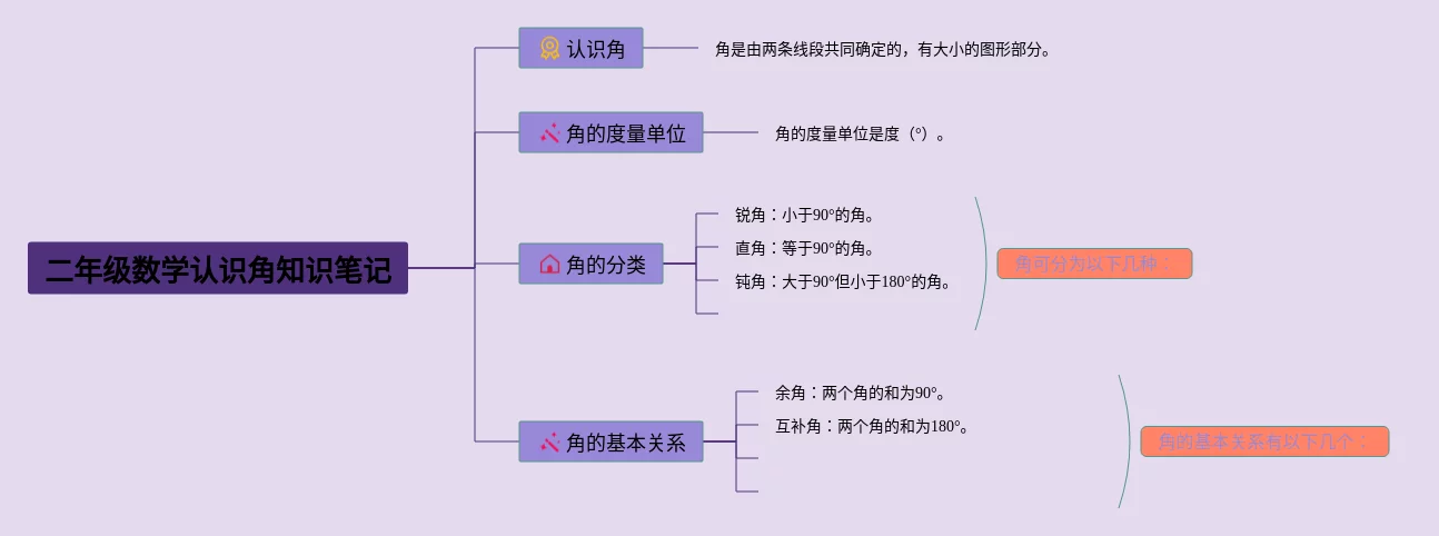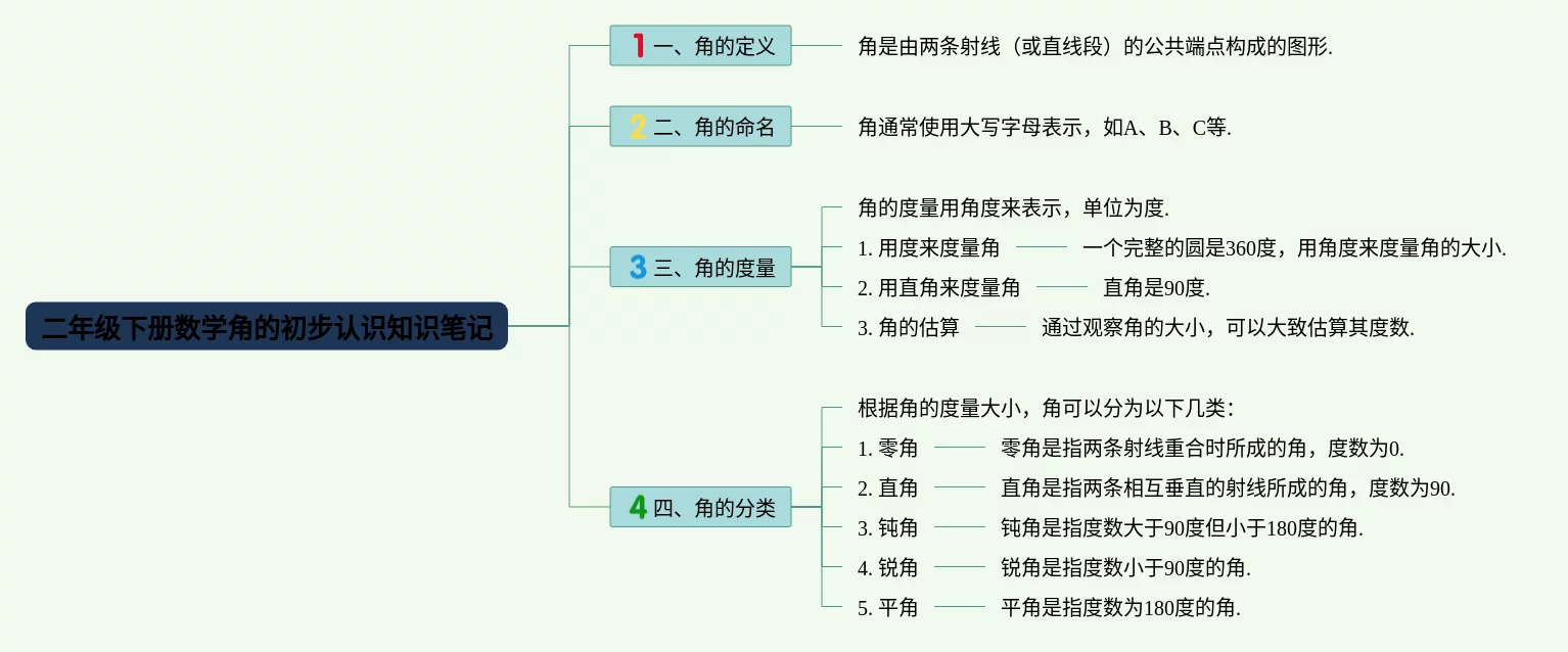二年级下册数学认识角思维导图(20张可打印)