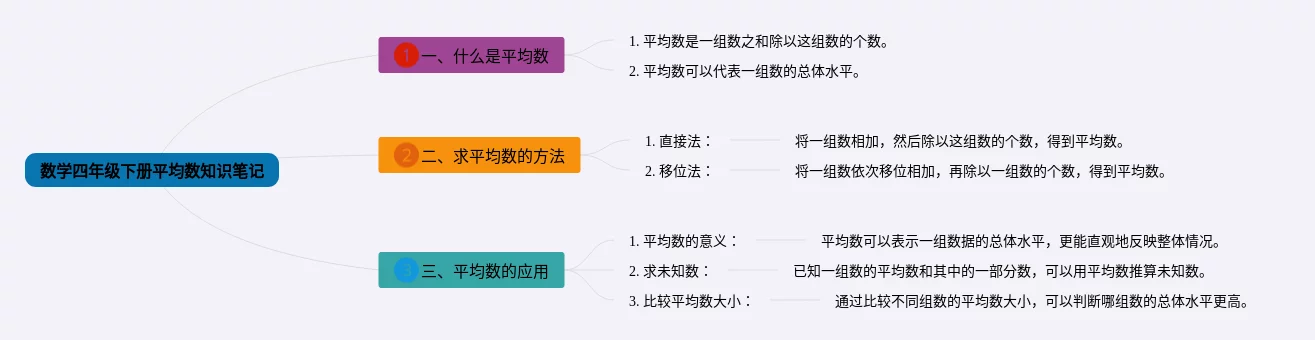 20张数学四年级下册第八单元思维导图平均数汇总,数学四年级下册第八单元思维导图平均数,内容涵盖1. 什么是平均数、2. 如何计算平均数、3. 平均数的意义、4. 平均数的应用等4个要点,20张附打印高清版,每张思维导图都非常清晰,每张图片均附打印高清版。