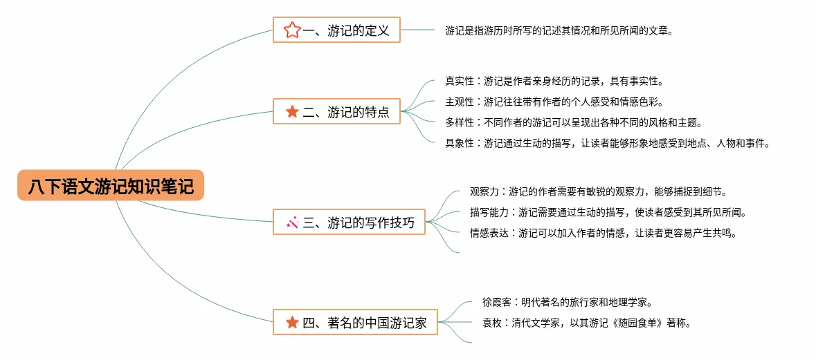 25张八下语文游记思维导图合集,八下语文游记思维导图,内容涵盖背景、取经前、取经中、取经成果、绘图树心旁语文【】 2023年1月31日等6个知识点,25张附打印高清版,每张思维导图都非常清晰,每张图片均附打印高清版。