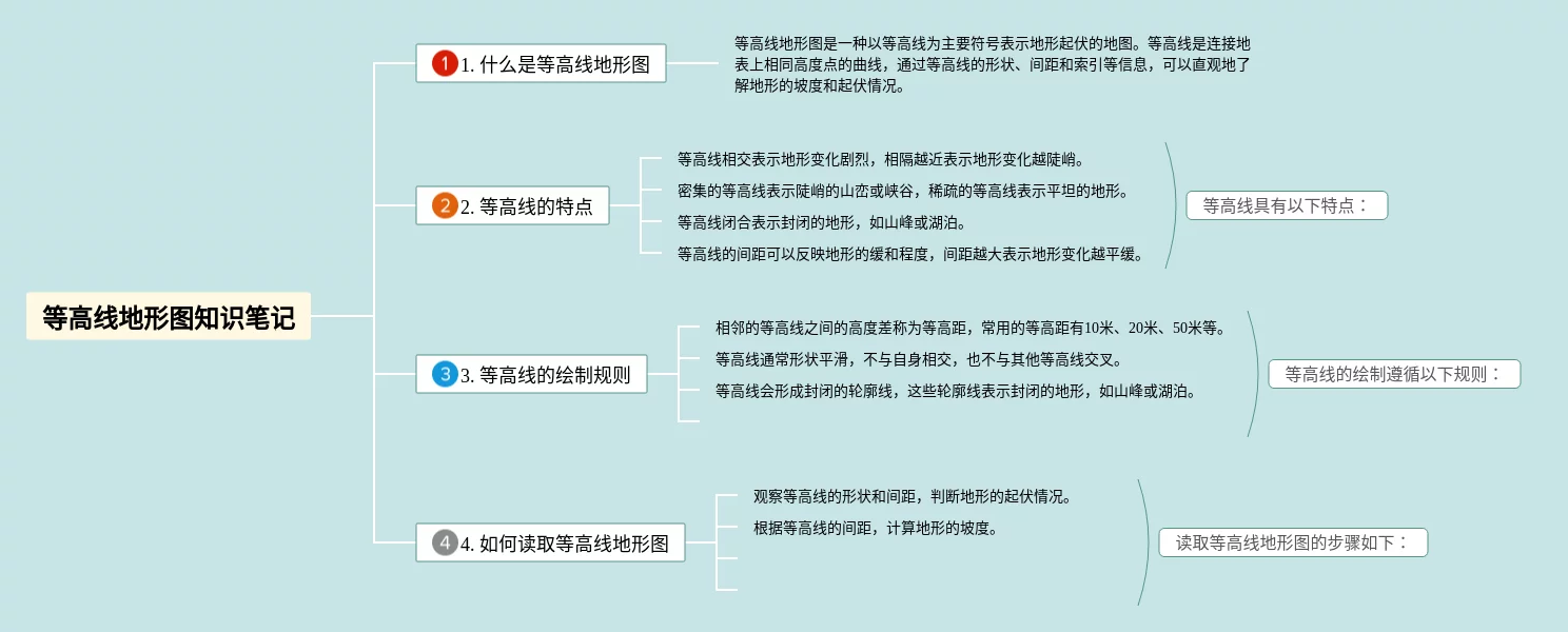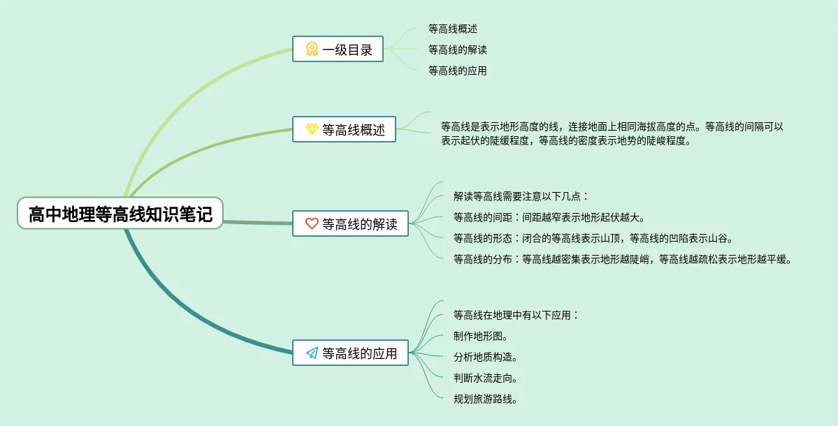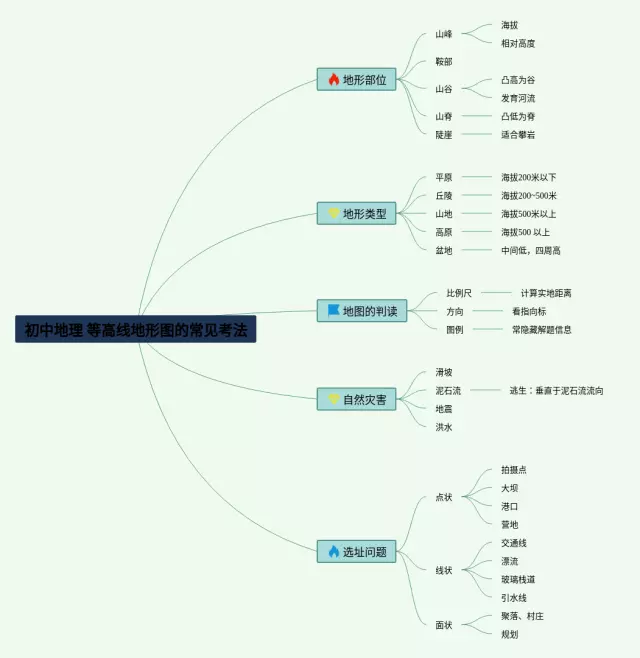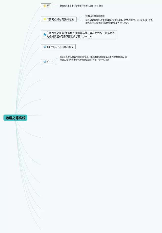 24张高中地理等高线思维导图合集,高中地理等高线思维导图,内容涵盖地形部位、地形类型、地图的判读、自然灾害、选址问题等5个知识点,24张可下载,每张思维导图都非常漂亮,每张图片均可下载。