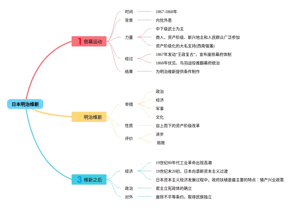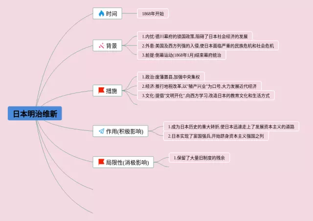 24张日本明治维新思维导图合集,日本明治维新思维导图,内容涵盖倒幕运动、明治维新等2个方面,24张精选版,每张思维导图都非常清晰,每张图片均精选版。