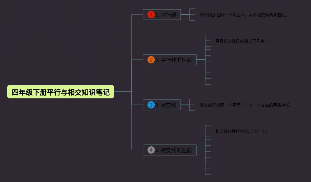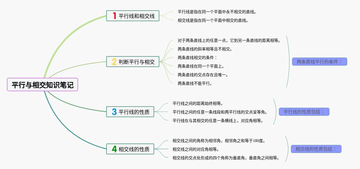 22张四年级平行与相交思维导图汇总,四年级平行与相交思维导图,内容涵盖平行线、交线等2个部分,22张高清版,每张思维导图都非常清晰,每张图片均高清版。