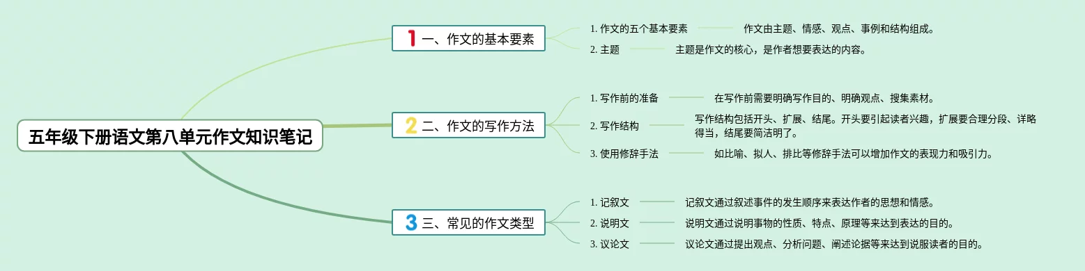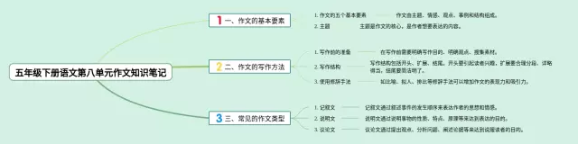 20张五年级下册第八单元作文思维导图汇总,五年级下册第八单元作文思维导图,内容涵盖作文的基本要素、作文的写作方法、常见的作文类型等3个方面,20张值得收藏,每张思维导图都非常简单,每张图片均值得收藏。